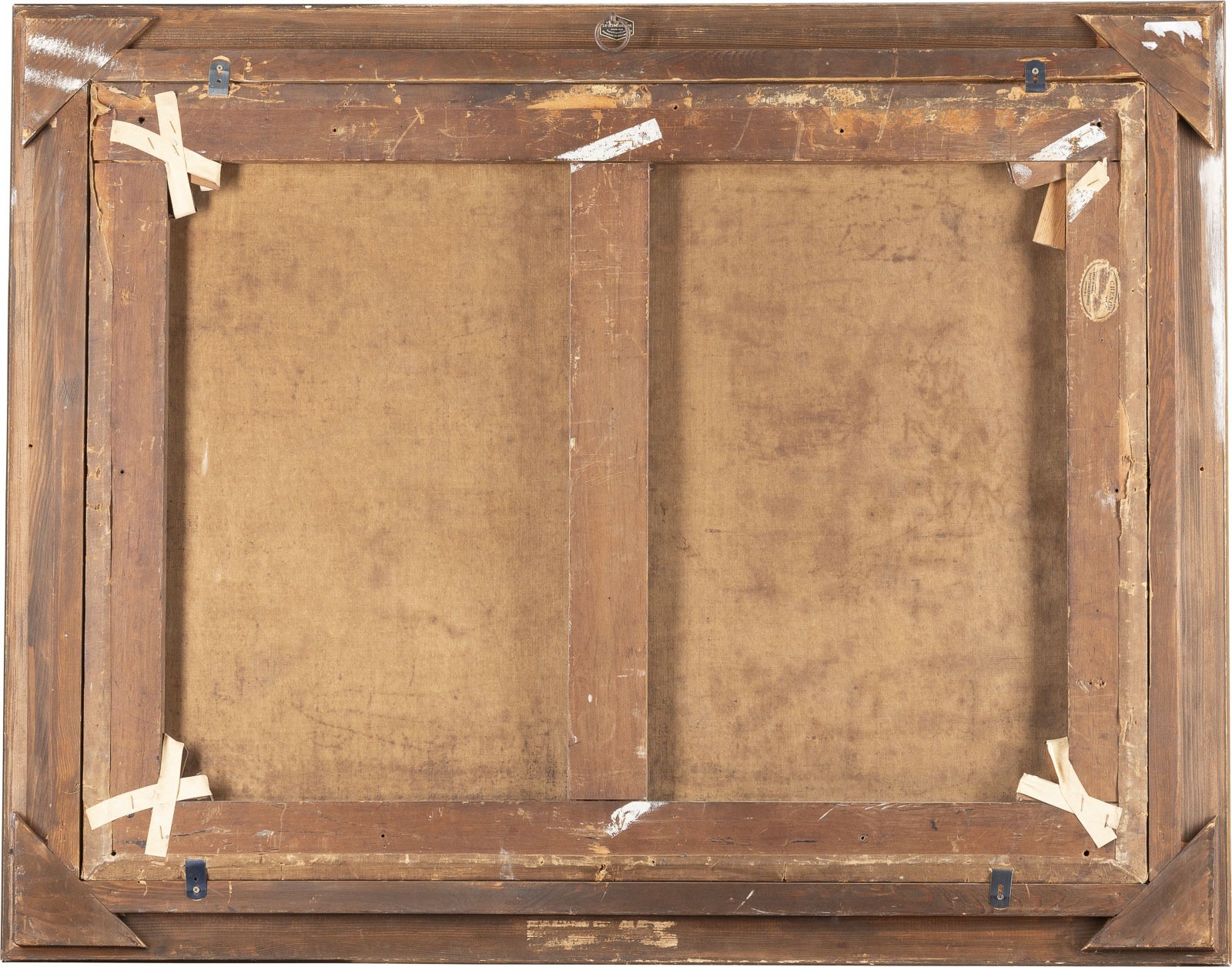 Öl auf Leinwand (altdoubl.). 75 x 100 cm (R. 91 x 115 cm). Part. leicht altrest., Altretuschen, besch.. Rahmen.