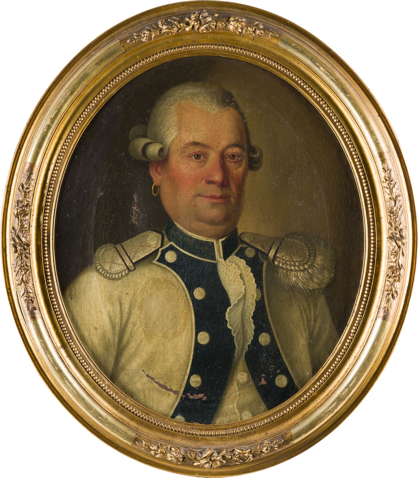 Öl auf Leinwand. 54 x 44 cm (R. 64 x 56 cm). Part. min. altrest., part. min. Altretuschen, Craquelé mit Farbverlusten, min. besch. Rahmen.