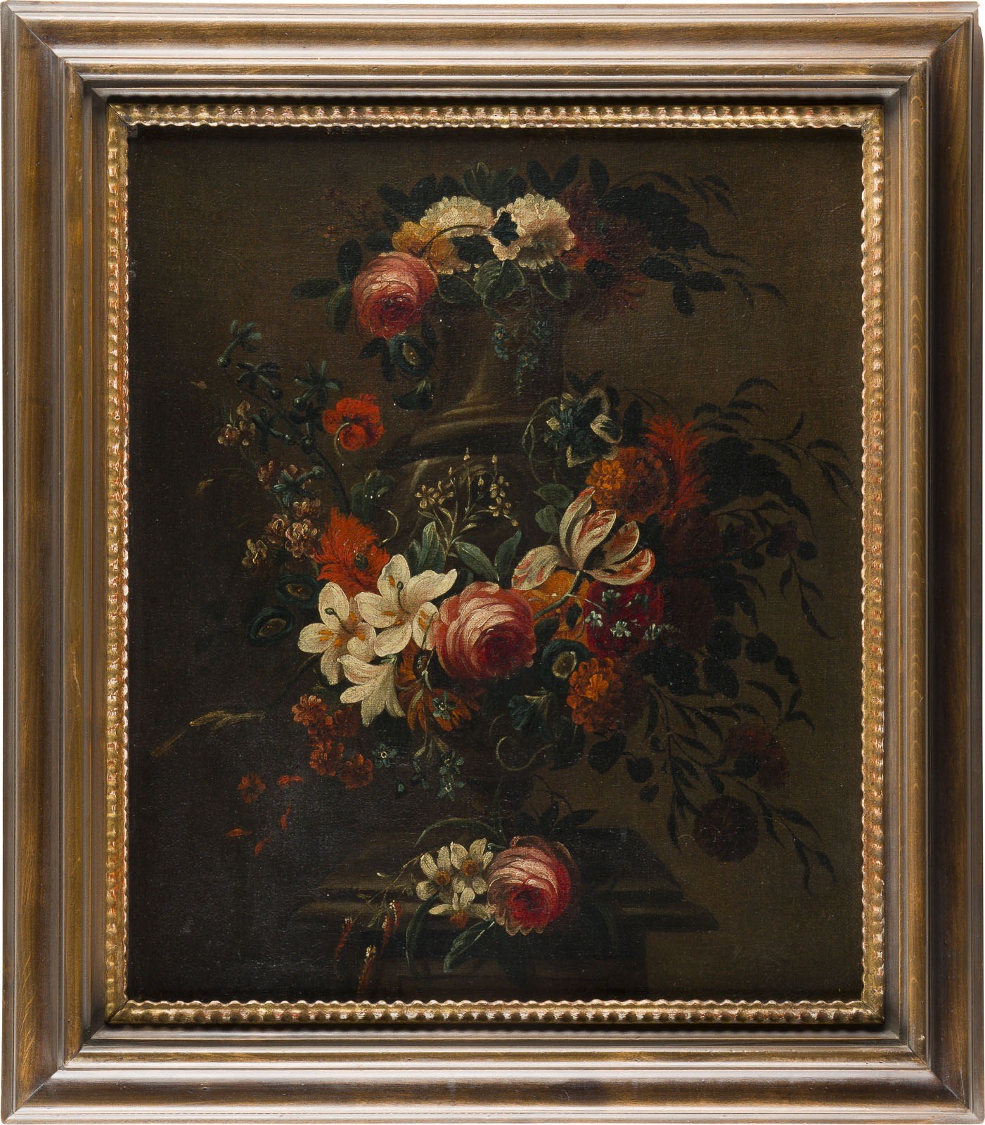 BLUMENSTILLLEBEN MIT ROSEN, NELKEN UND LILIEN