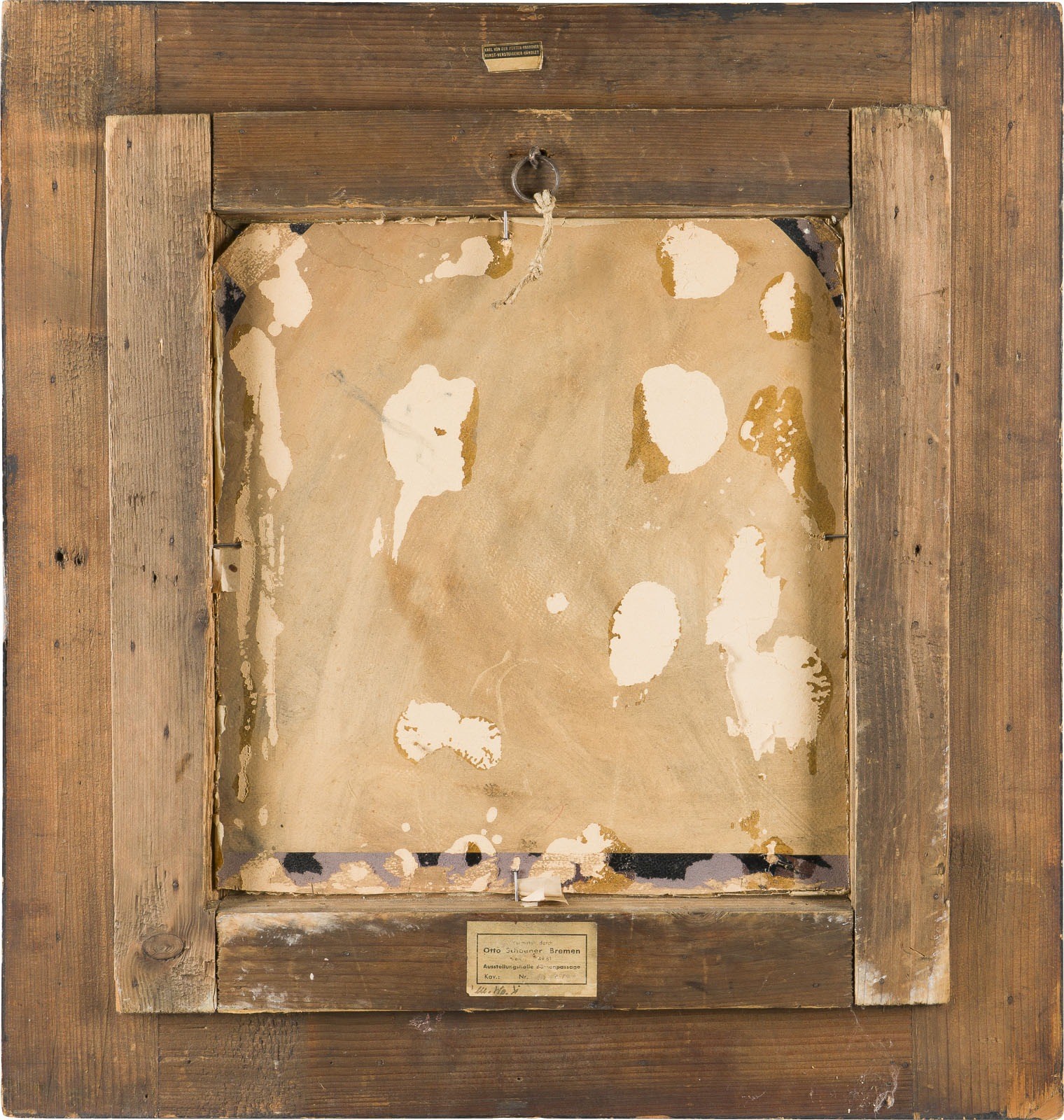 Öl auf Leinwand auf alte Pappe. 39 x 36 cm (R. 64 x 61 cm). Verso: Auf altem Papierlabel beschriftet: Vermittelt durch: Otto Scoener Bremen Tel... 4981 Ausstellungshalle Börsenpassage Kav: ... Nr. ... M.Wo.i.'. Kanten oben rechts und links leicht gekürzt, min. altrest. und leicht berieben, min. Retuschen. Rahmen.