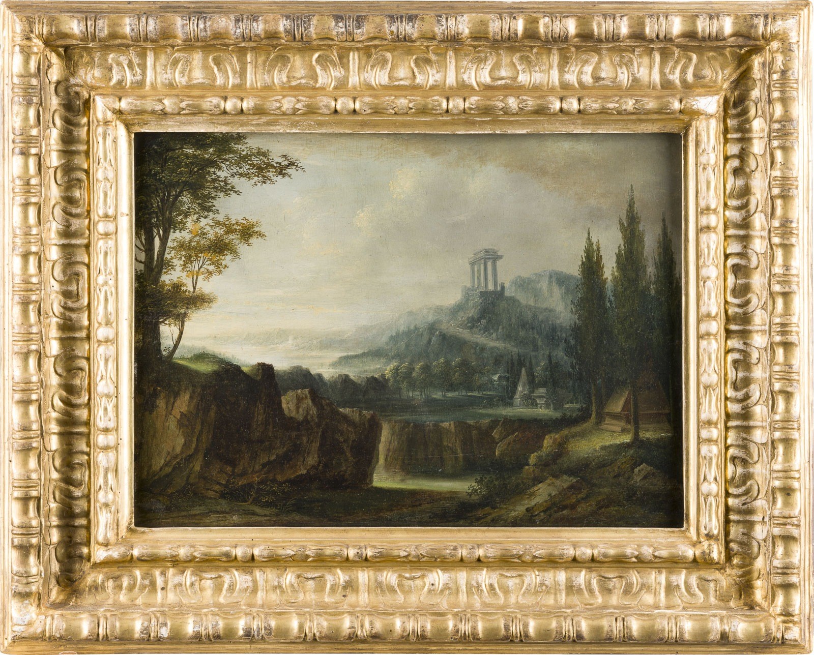 Öl auf Eichenholztafel (parkettiert). 37 x 50 cm (R. 58 x 71cm). Part. min. altrest., part. min. Altretuschen. Rahmen.