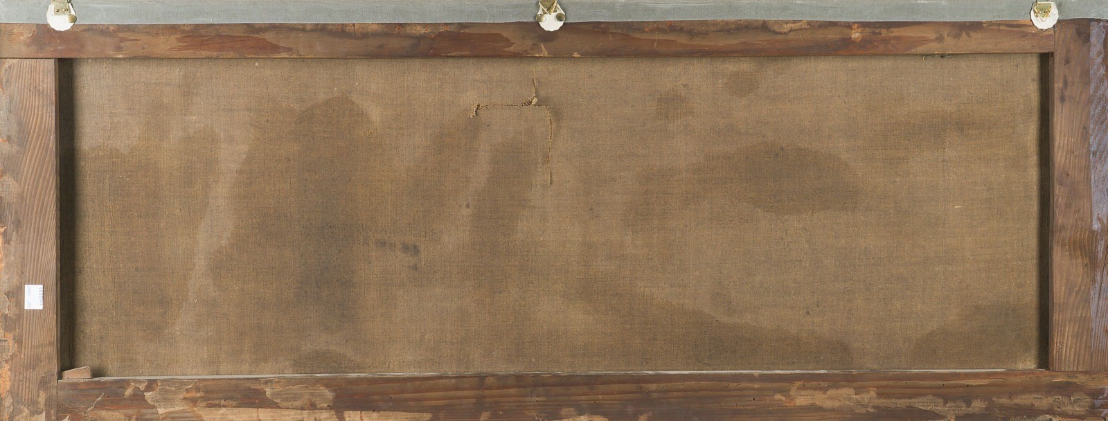 Öl auf Leinwand. 121 x 47 cm. Part. besch., Farbverluste, verschmutzte Oberfläche, Altretuschen.