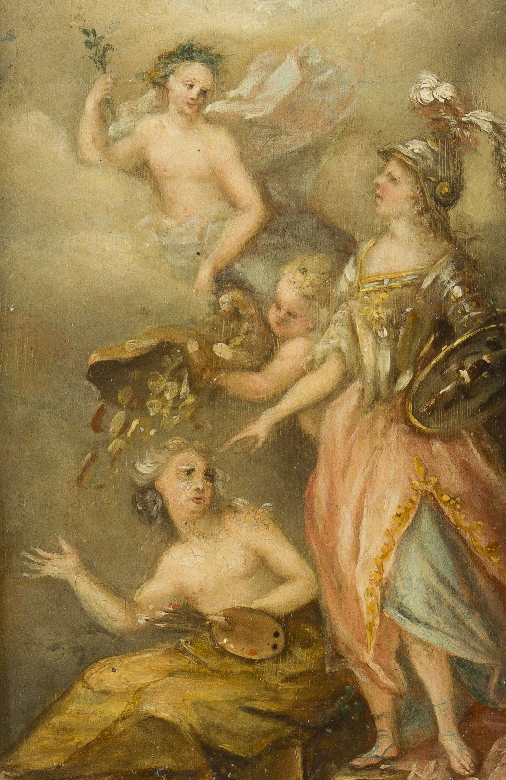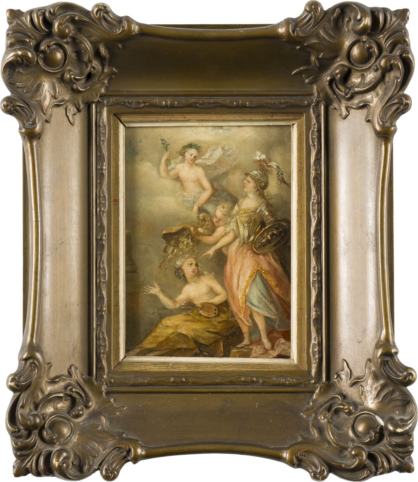 Öl auf Holztafel. 16 x 12,5 cm (R. 27 x 23 cm). Part. leicht altrest., part. min. Altretuschen. Rahmen.