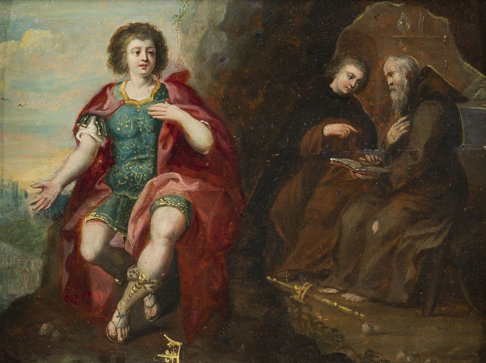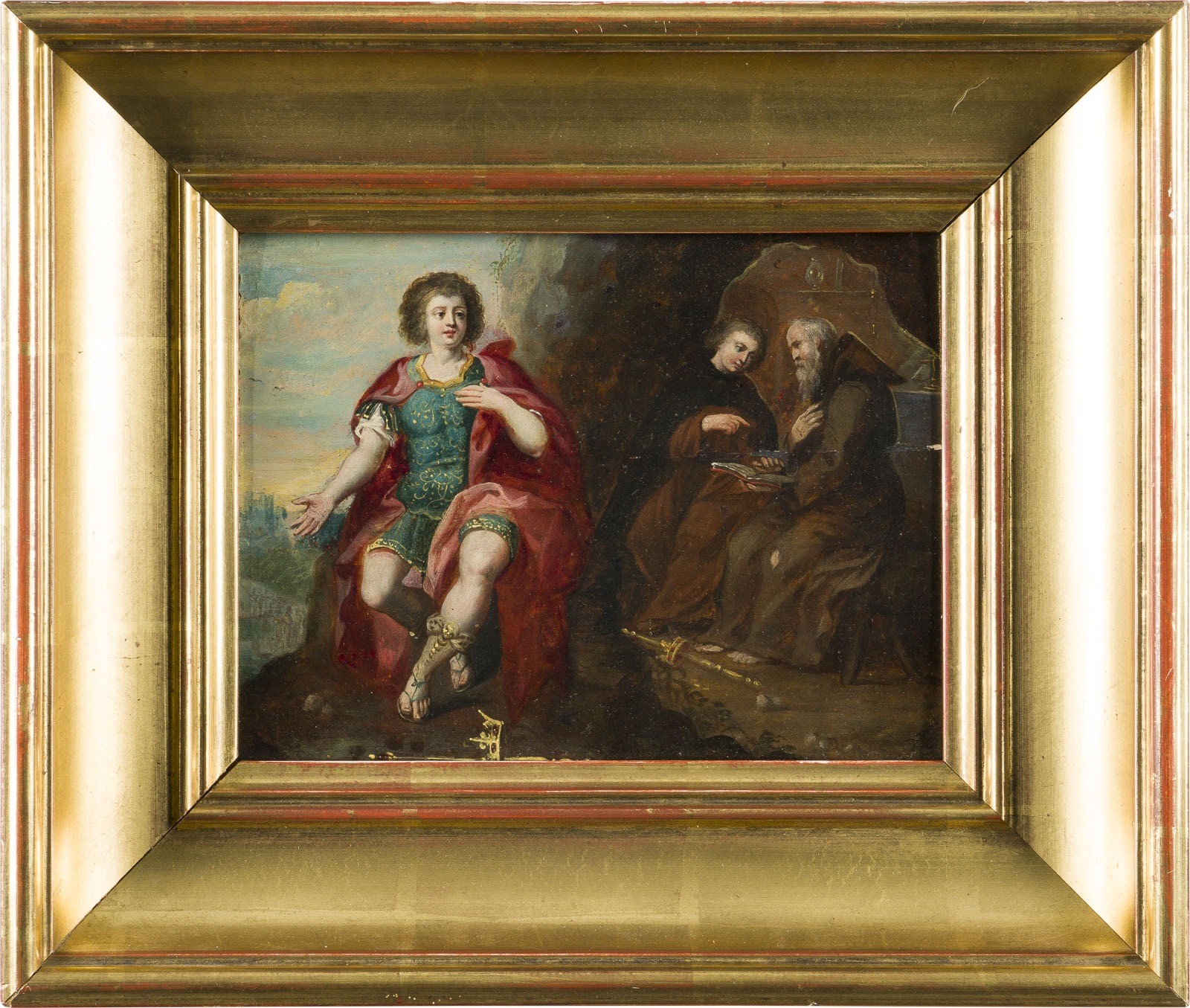 Öl auf Eichenholztafel. 19 x 24 cm (R. 30,5 x 35,5 cm). Min. altrest., min. Altreutschen, horizontaler Spannungsriss. Rahmen.