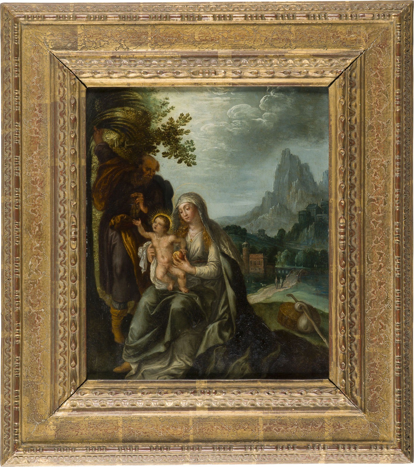 Öl auf handgetriebene Kupfertafel. 38 x 30 cm (R. 51 x 45,5 cm). Part. min. altrest., part. min. Altretuschen. Rahmen.