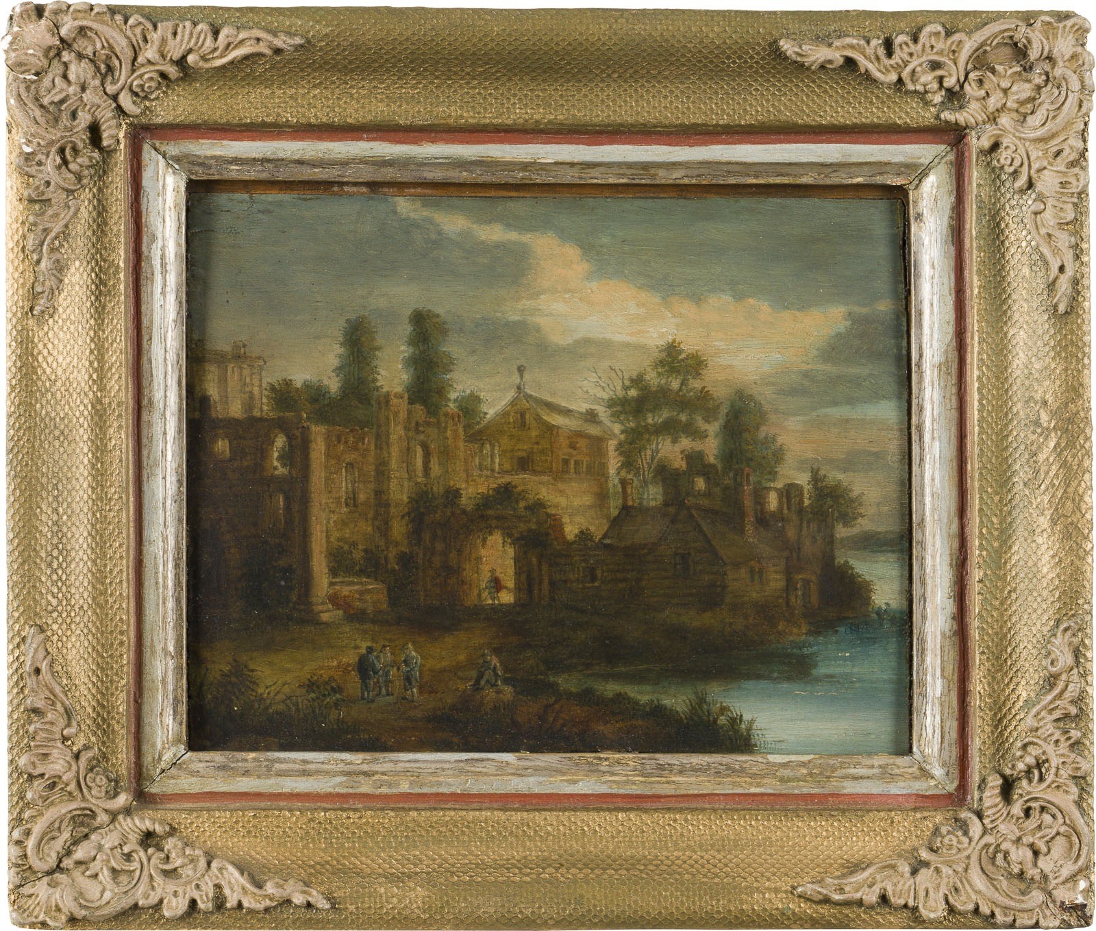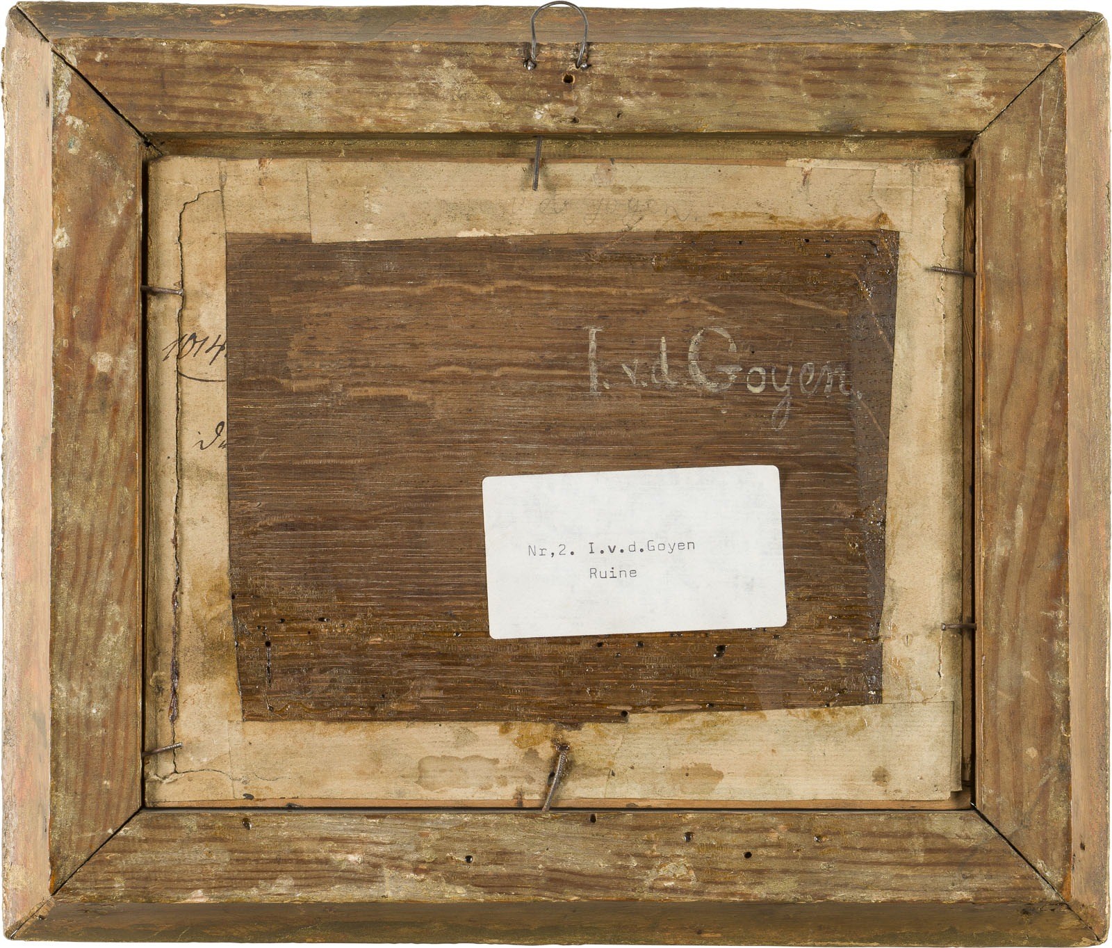 Öl auf Eichenholztafel. 16,5 x 21 cm (R. 24 x 28 cm). Verso: Auf Papierlabel 'Nr, 2. I. v. d. Goyen Ruine', auf Holztafel in alter Schrift 'I. v. d. Goyen'. Part. min. altrest., part. min. Altretuschen. Rahmen.