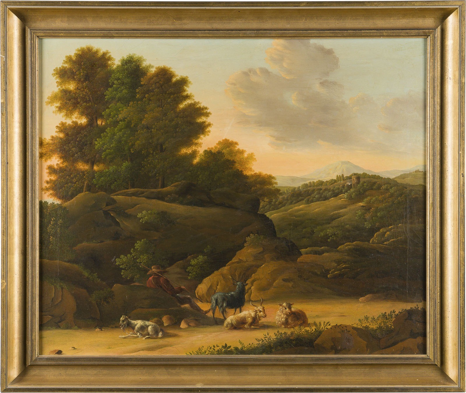 Öl auf Leinwand (altdoubl.). 47 x 57 cm (R. 56 x 66 cm). Part. min. altrest., part. min. Altretuschen. Rahmen.