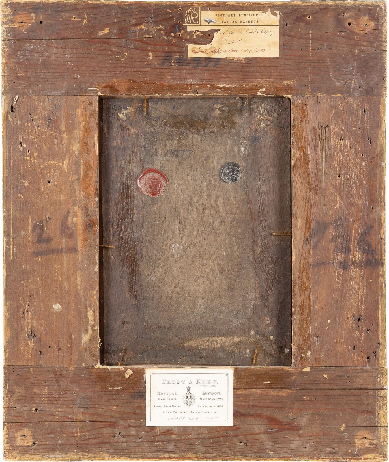 Öl auf Eichenholztafel. 26 x 35,5 cm (R. 61 x 51 cm). Auf dem Rahmen auf altem Papierlabel 'Fine Art Publishers mit Provenienzangabe '... Sir
