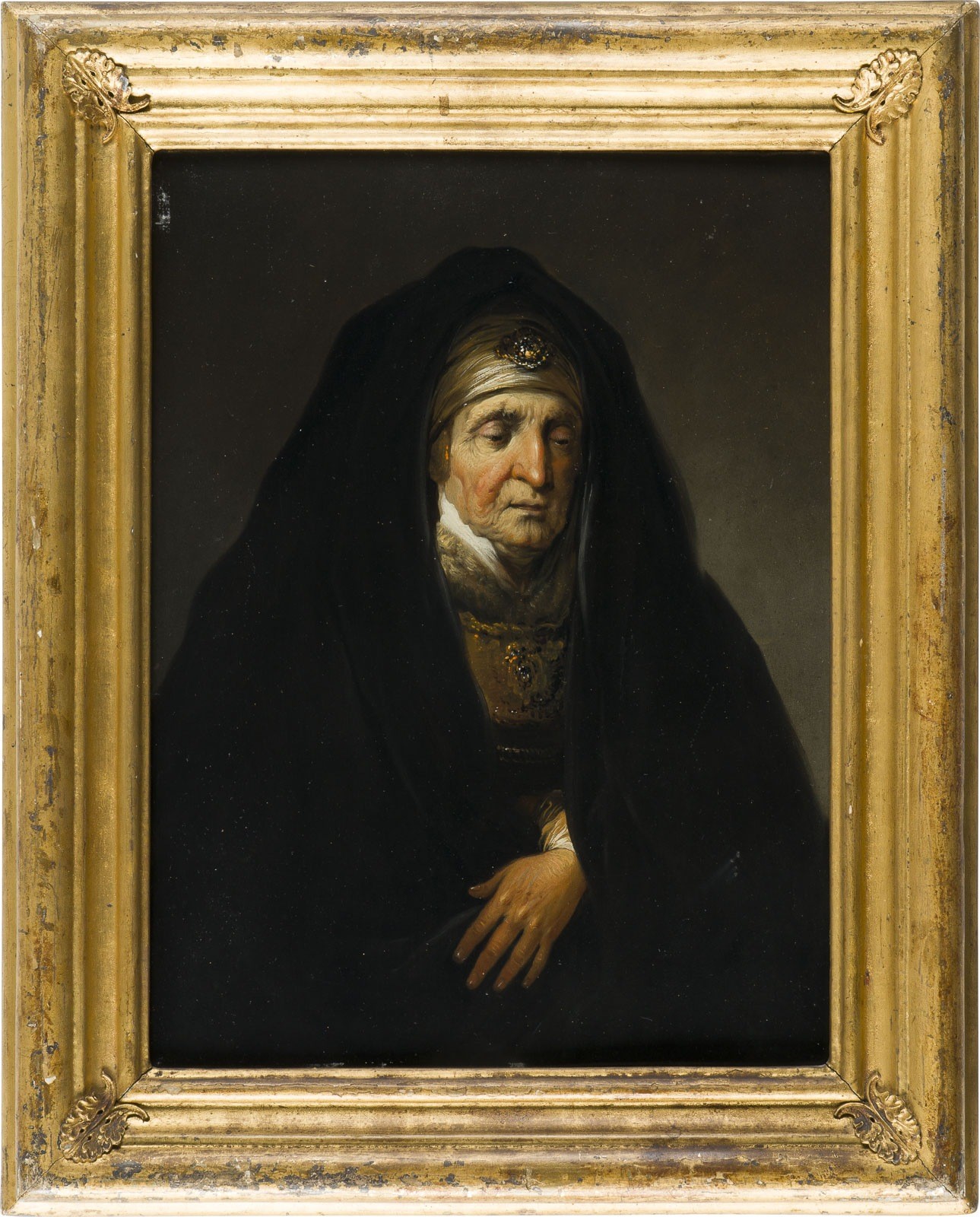 Öl auf Eichenholztafel. 38 x 28 cm (R. 48 x 38,5 cm). Verso: Auf der Rückseite der Tafel bezeichnet: 'Dietrich Dresden' und alte Provenienzangabe. Part. min. altrest. Rahmen.