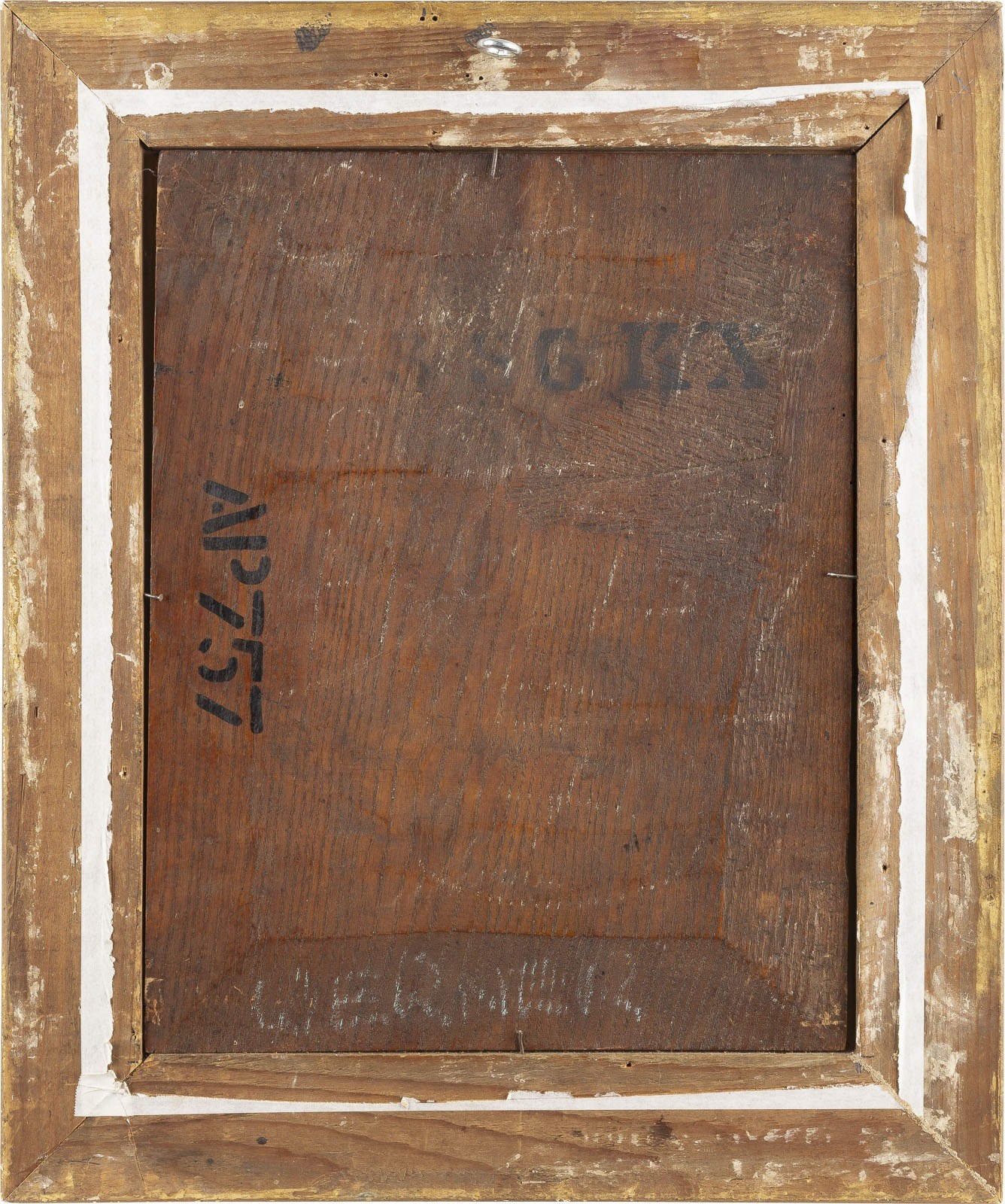 Öl auf Eichenholztafel. 33,7 x 26,3 cm (R. 45 x 37,5 cm). Part. min. altrest. Rahmen.