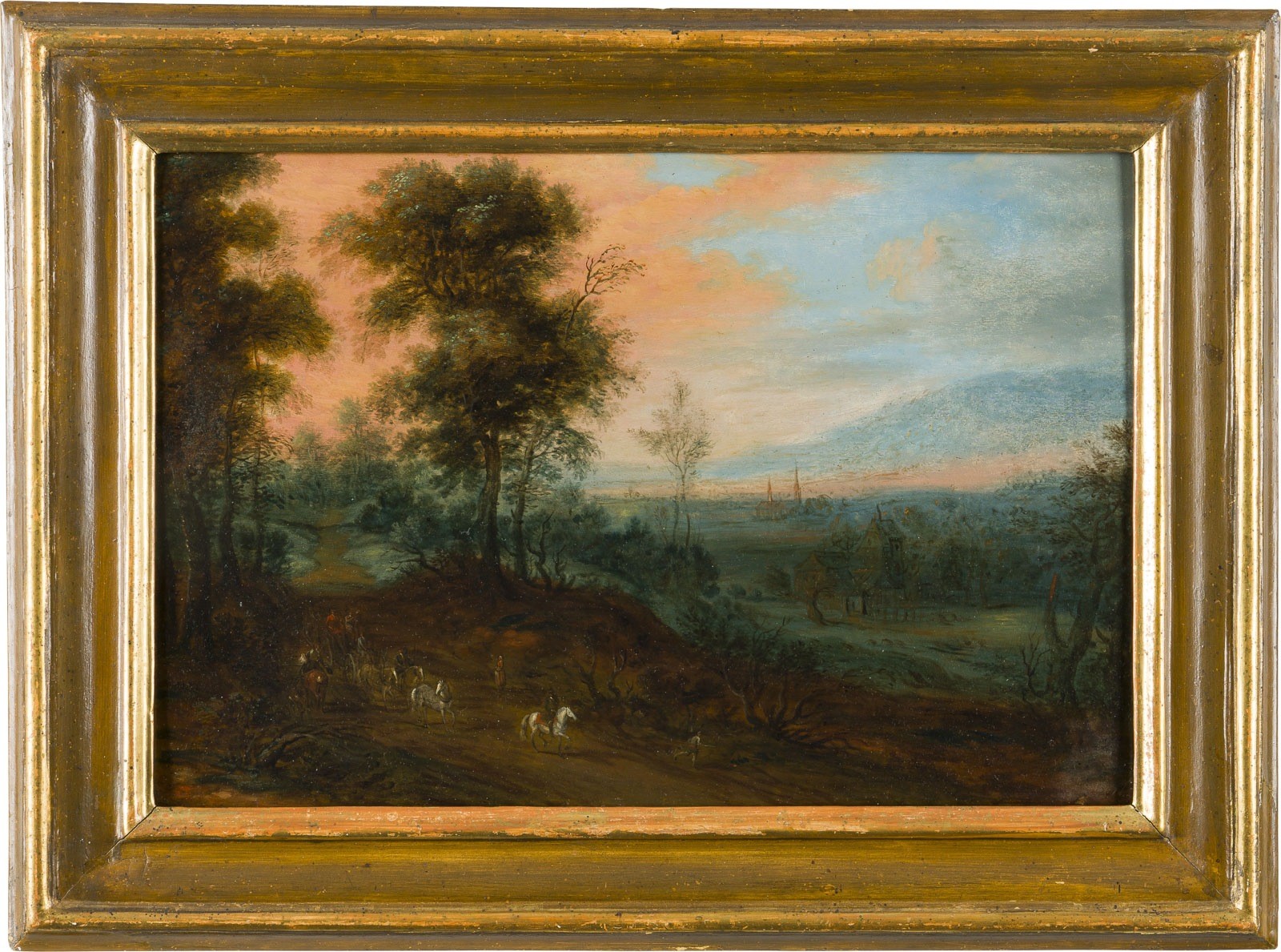 Öl auf Eichenholztafel. 26 x 39 cm (R. 37 x 49,5 cm). Part. min. altrest., min. Altretuschen. Rahmen.