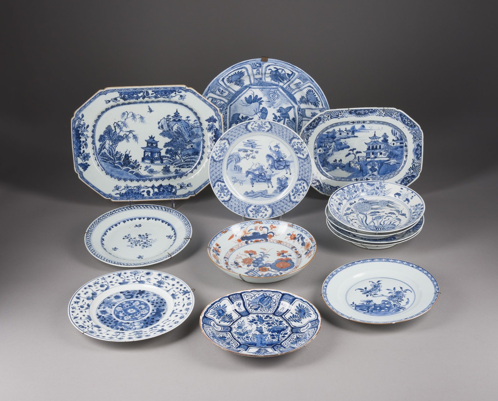Porzellan. D. ca. 21-35 cm. Sieben davon sind mit Marke am Boden. Teilw. best., mit Gebrauchsspuren und Rissen.