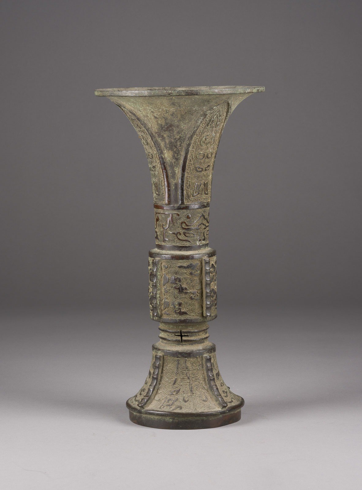 EIN ARCHAISCHES RITUALGEFÄSS (GU) AUS BRONZE