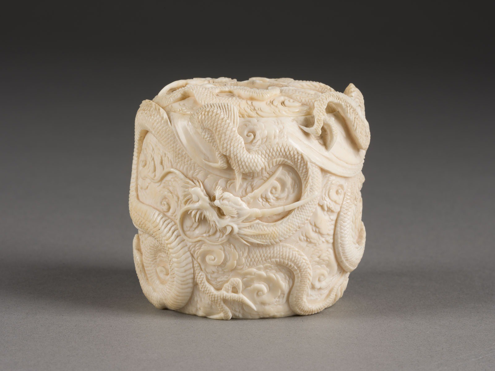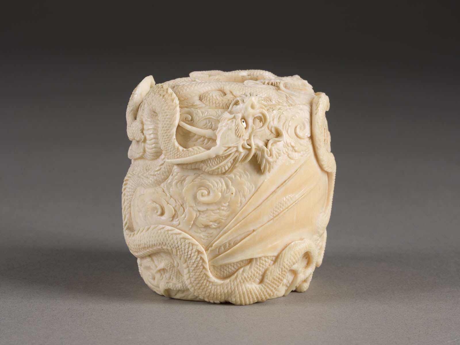 EIN GESCHNITZTES TONKOTSU MIT DRACHENDARSTELLUNG AUS ELFENBEIN