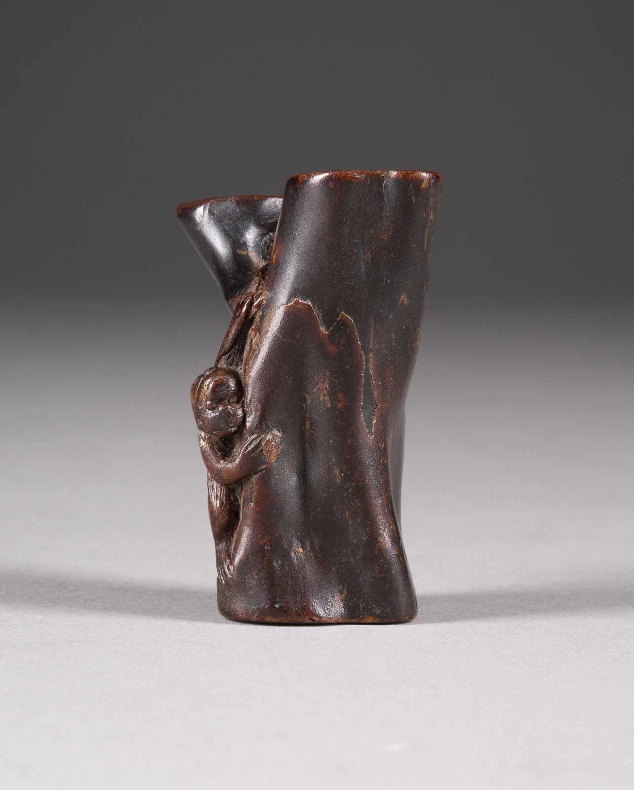 Umimatsu. H. 6,2 cm. Das Netsuke zeigt einen Affen, der auf einem Baum klettert. Part. besh., mit Alters- und Gebrauchsspuren.