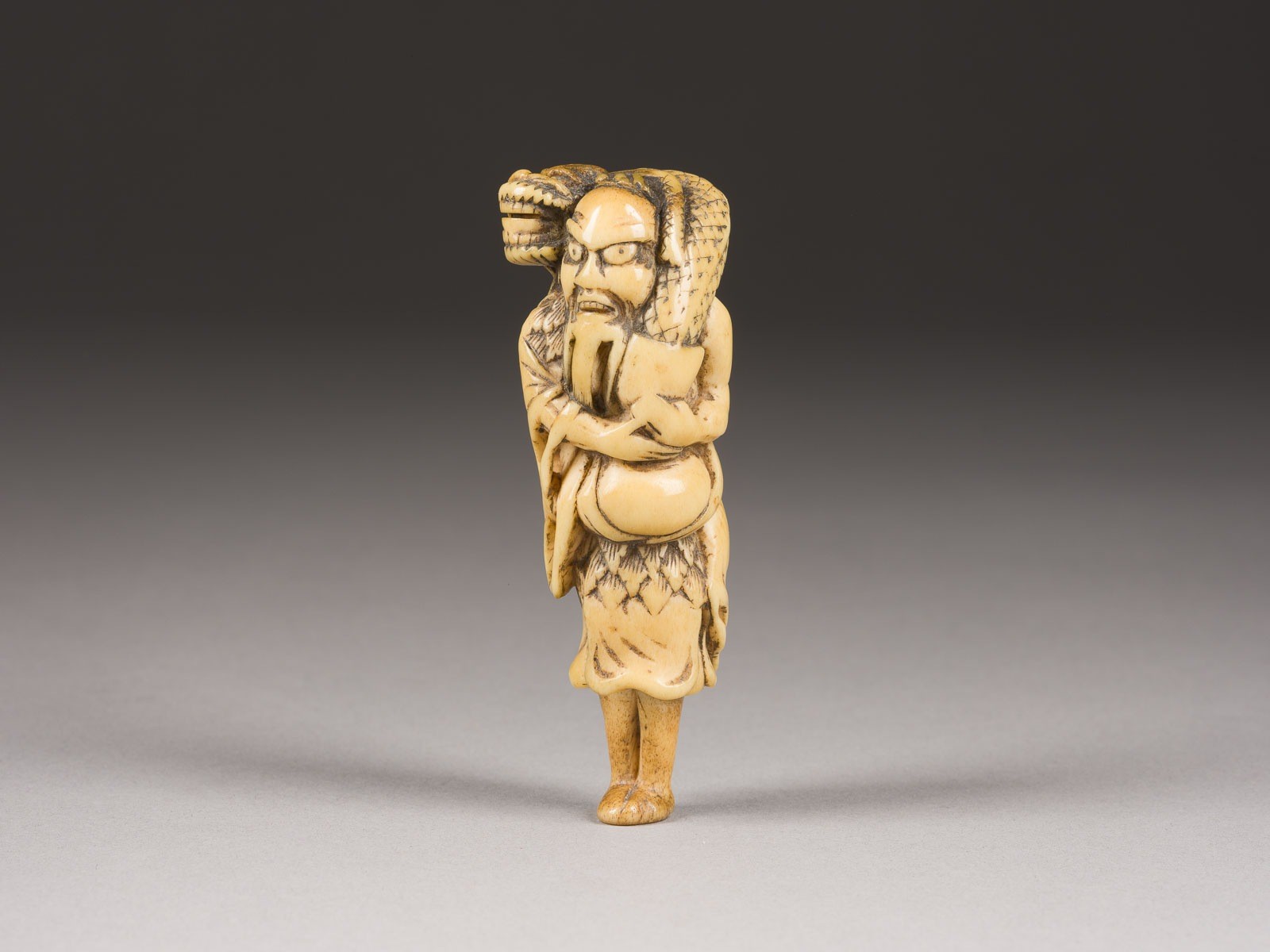 EIN NETSUKE EINES BASHIKO SENNIN AUS HIRSCHHORN