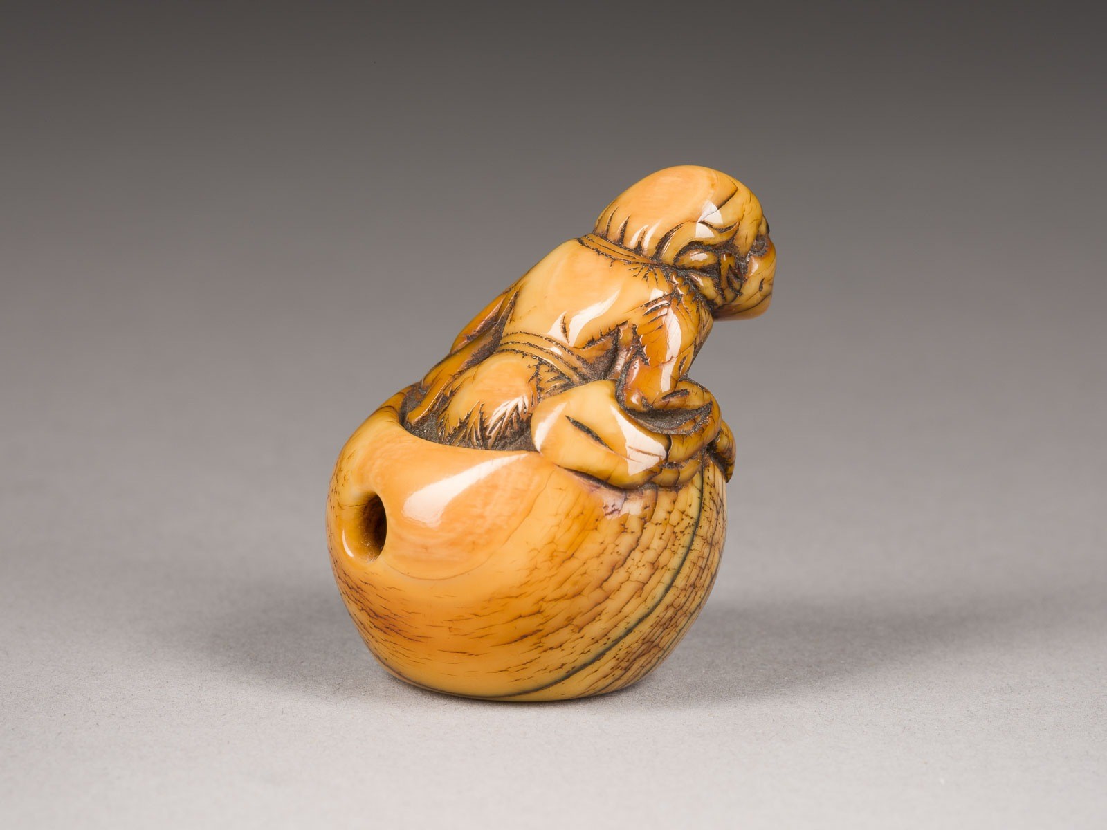 EIN NETSUKE EINES KOKO SENNIN AUS WALROSSZAHN