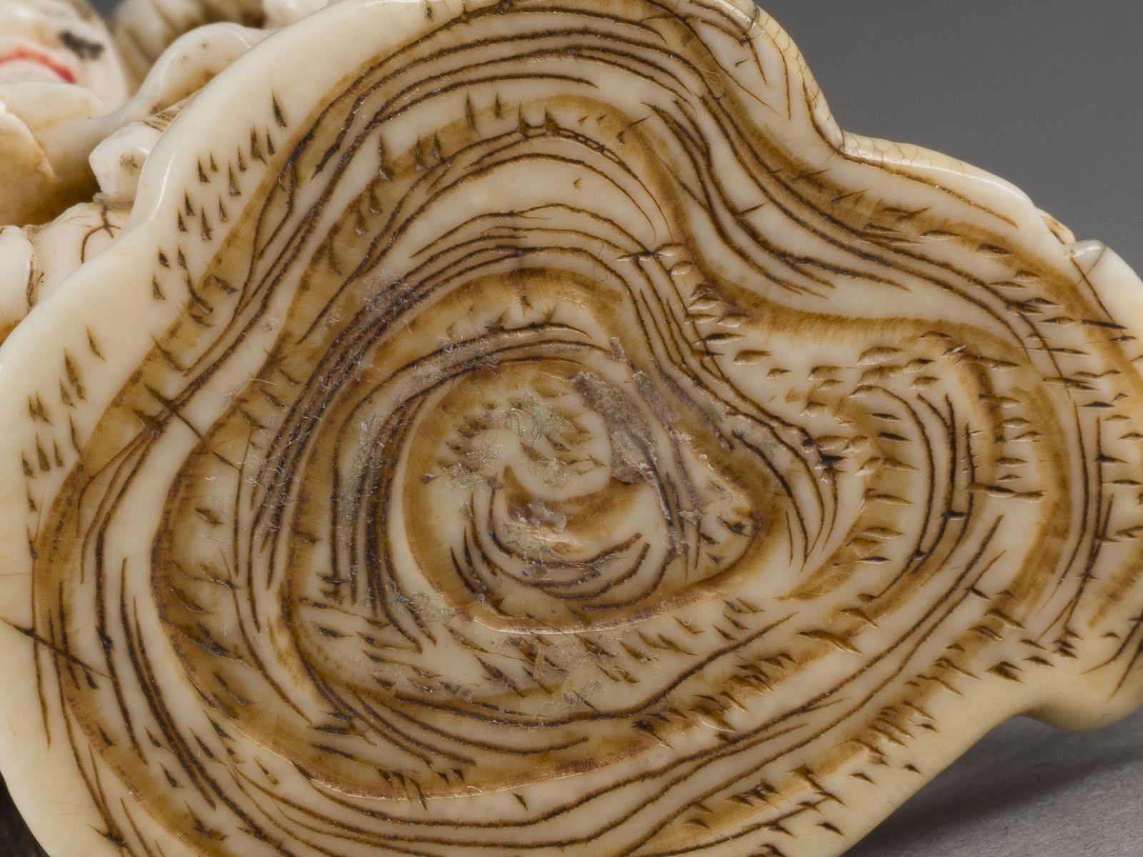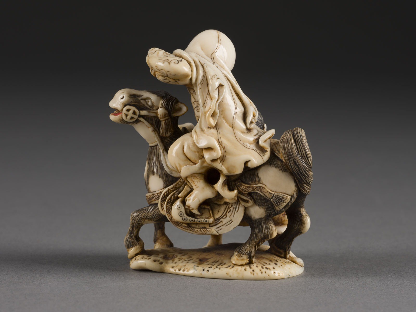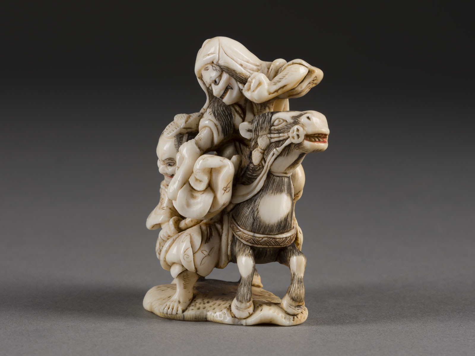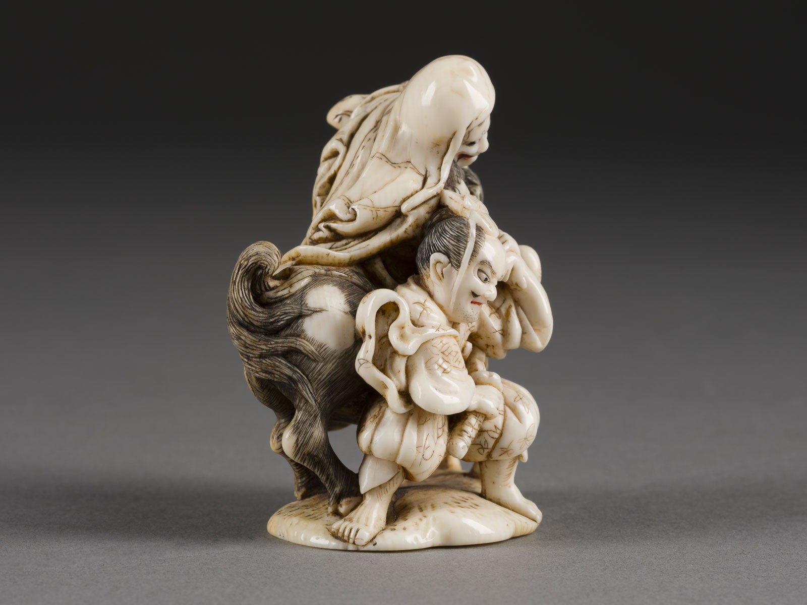 EIN OKIMONO MIT DARSTELLUNG VON KOREMOCHI UND HANNYA AUS ELFENBEIN