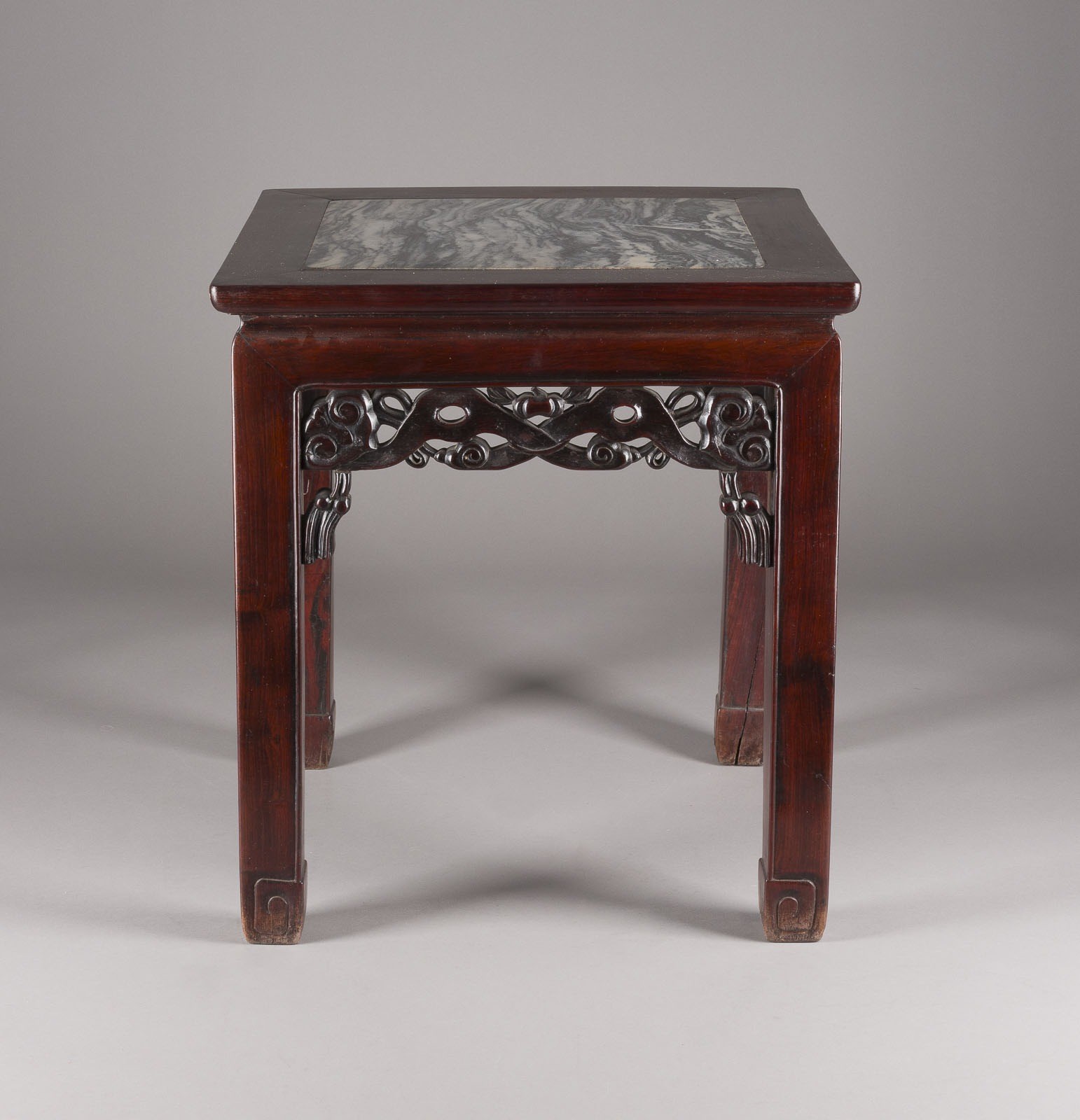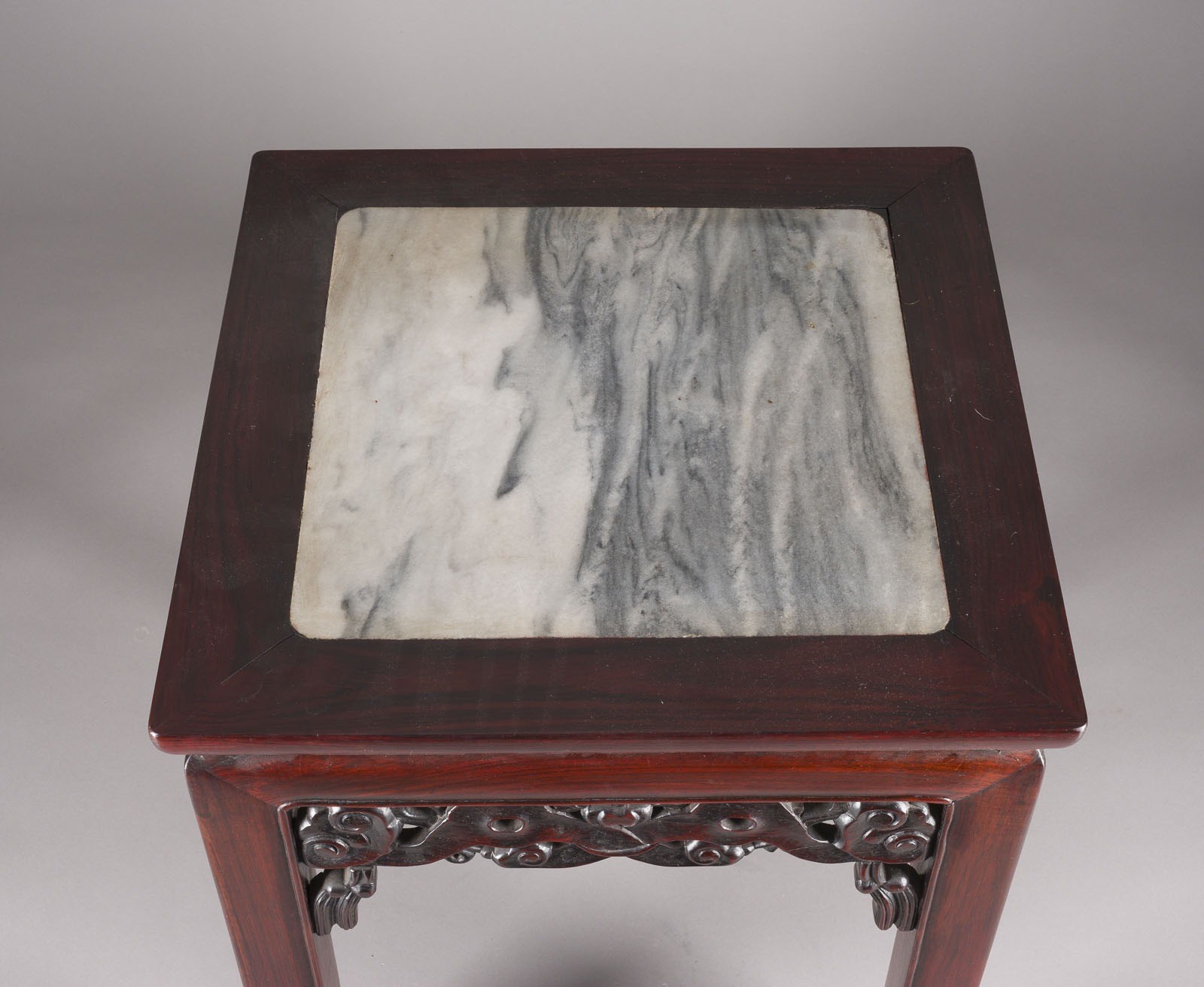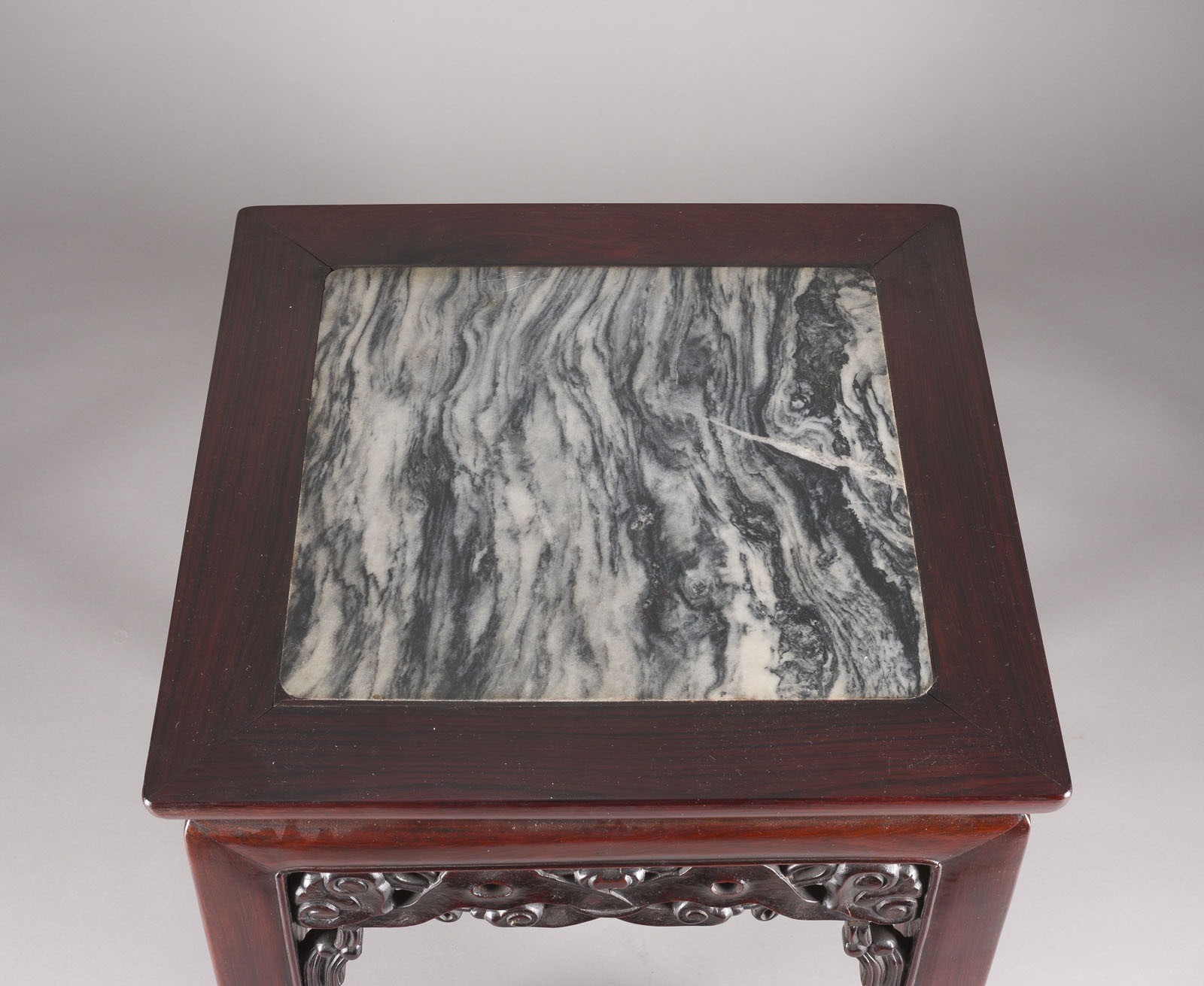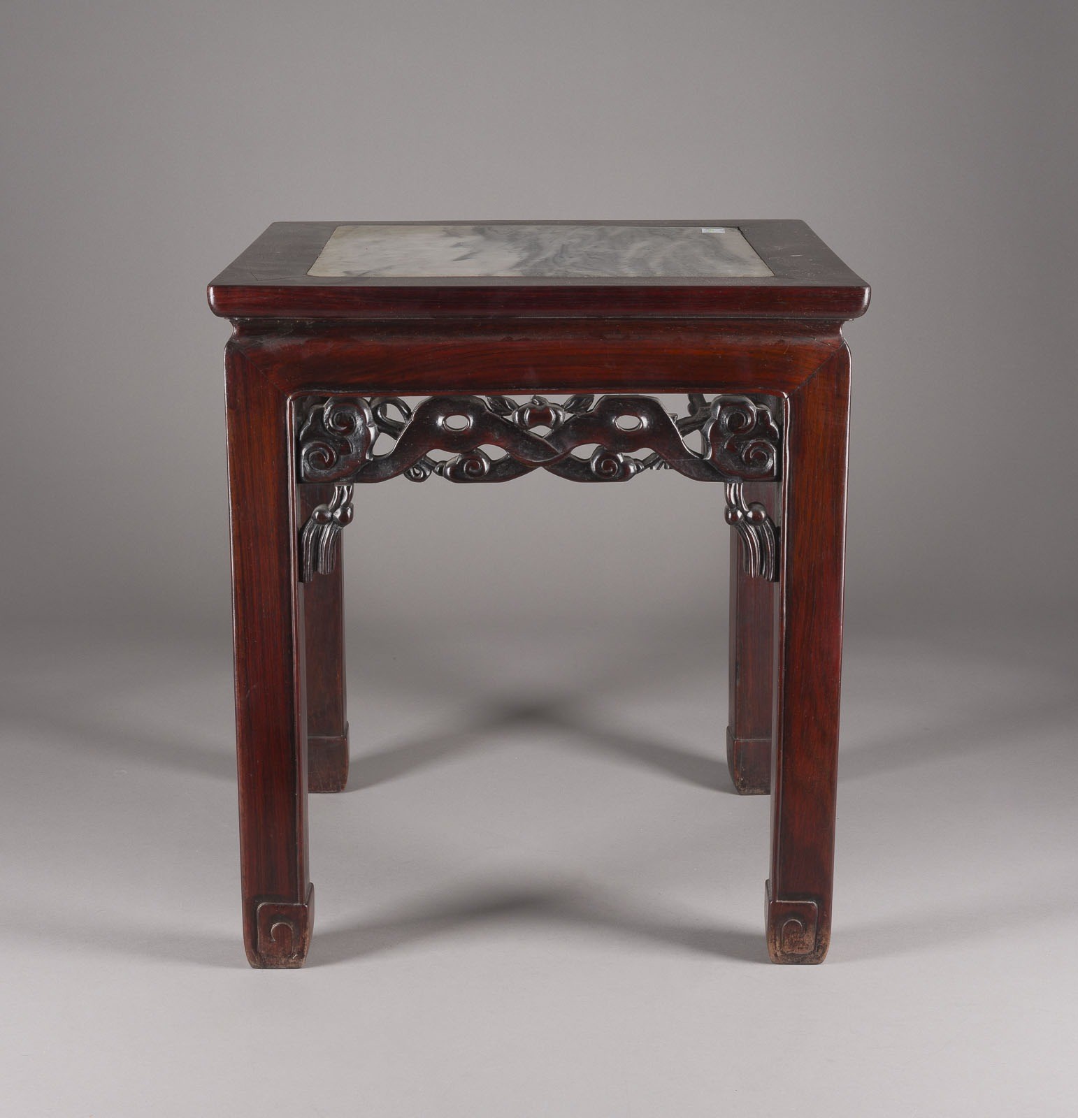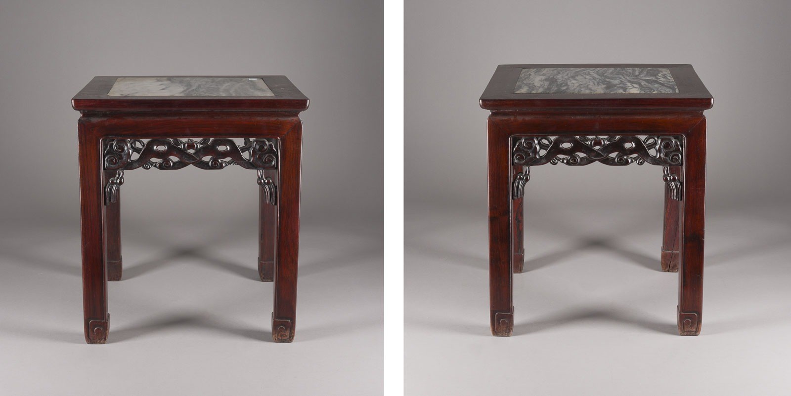 EIN PAAR BEISTELLTISCHE MIT MARMOREINLAGE AUS HARTHOLZ
