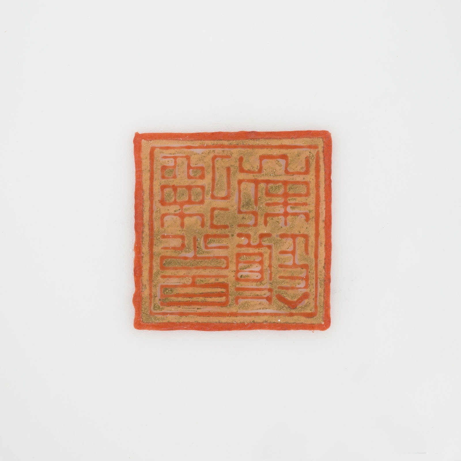 Porzellan. H. 24,8 cm. Die Vase ist in Cong-Form, mit korallrotem Grund und goldbemalten Blumenmustern dekoriert.