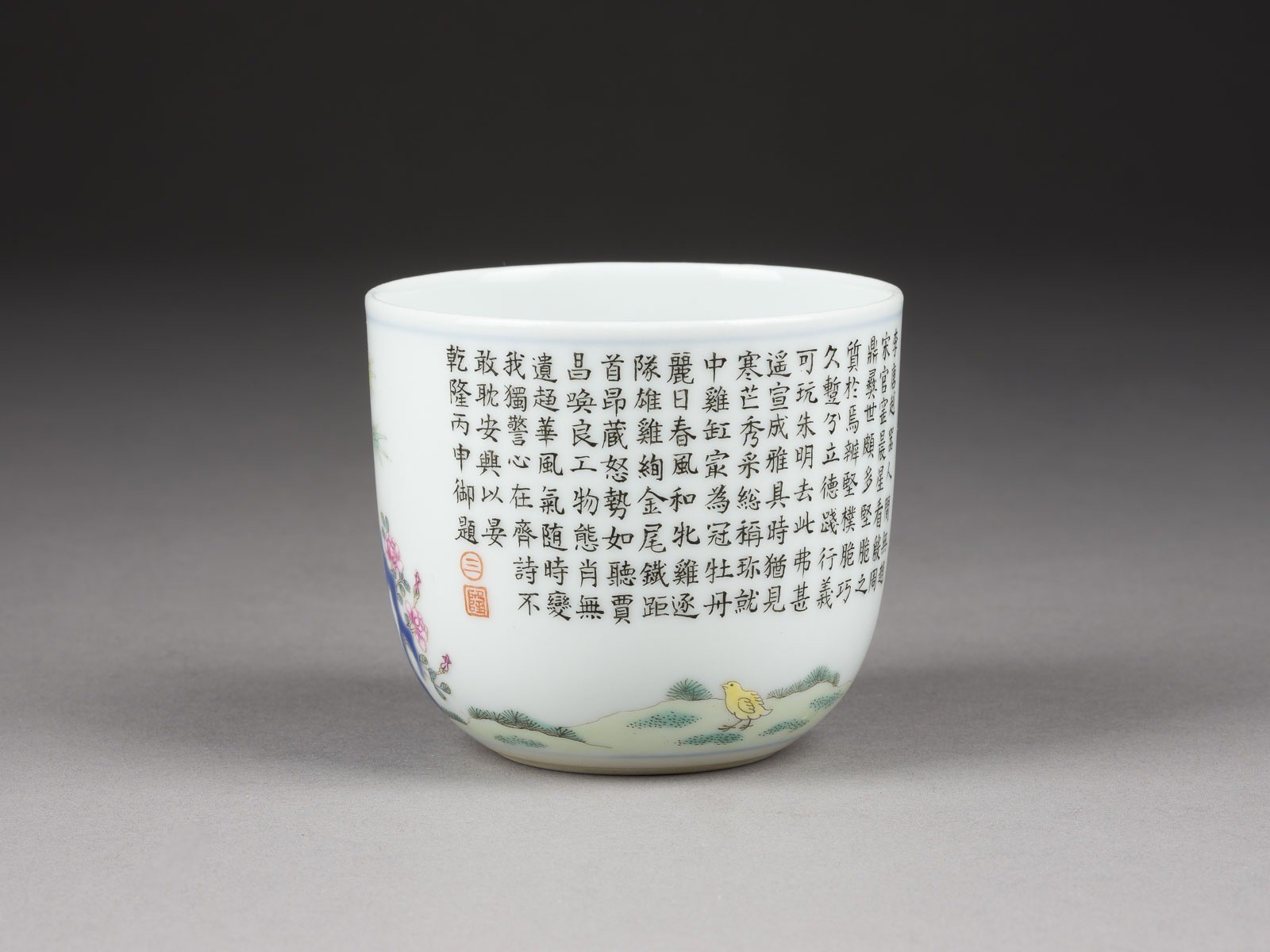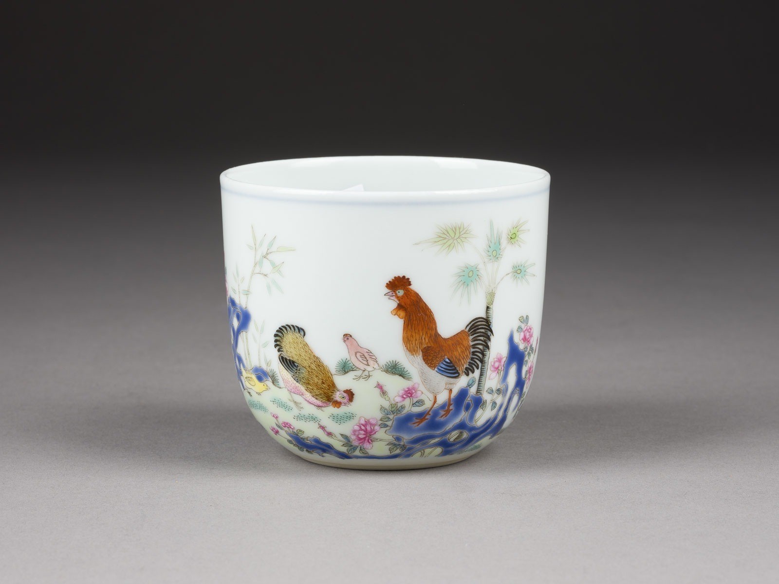 EINE FAMILLE-ROSE-TASSE MIT HÜHNERDARSTELLUNG