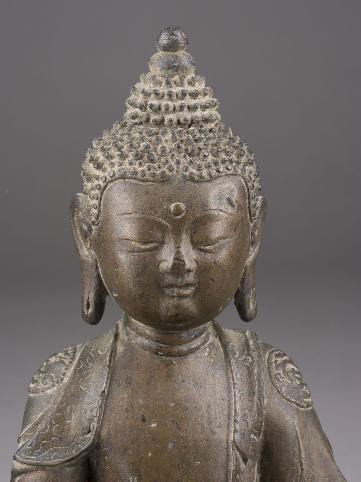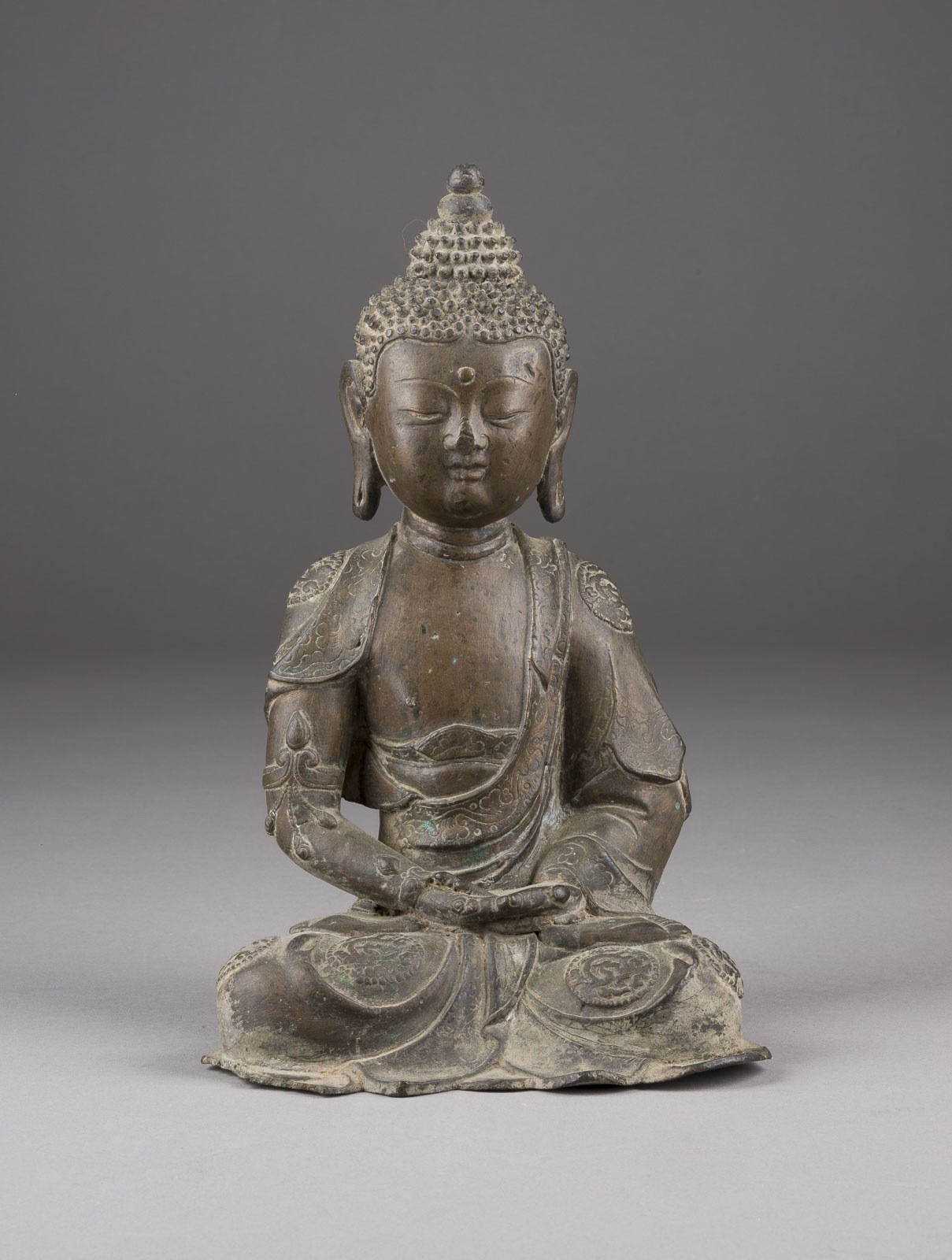 EINE FIGUR DES BUDDHA AMITABHA AUS BRONZEN