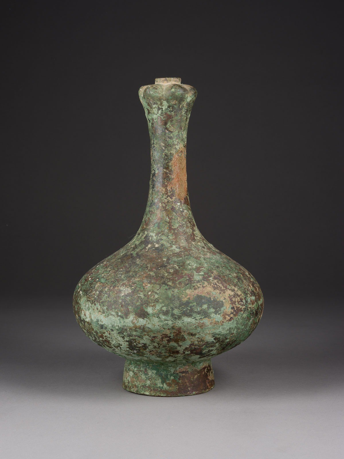 EINE VASE MIT KNOBLAUCHFÖRMIGEM MUND AUS BRONZE