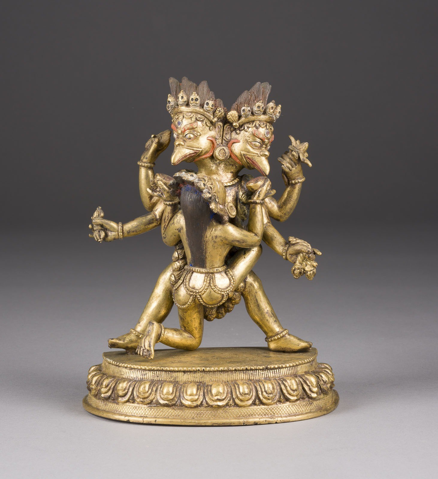EINE VERGOLDETE BRONZEFIGUR DES KAKAMUKHA MAHAKALA MIT GEMAHLIN