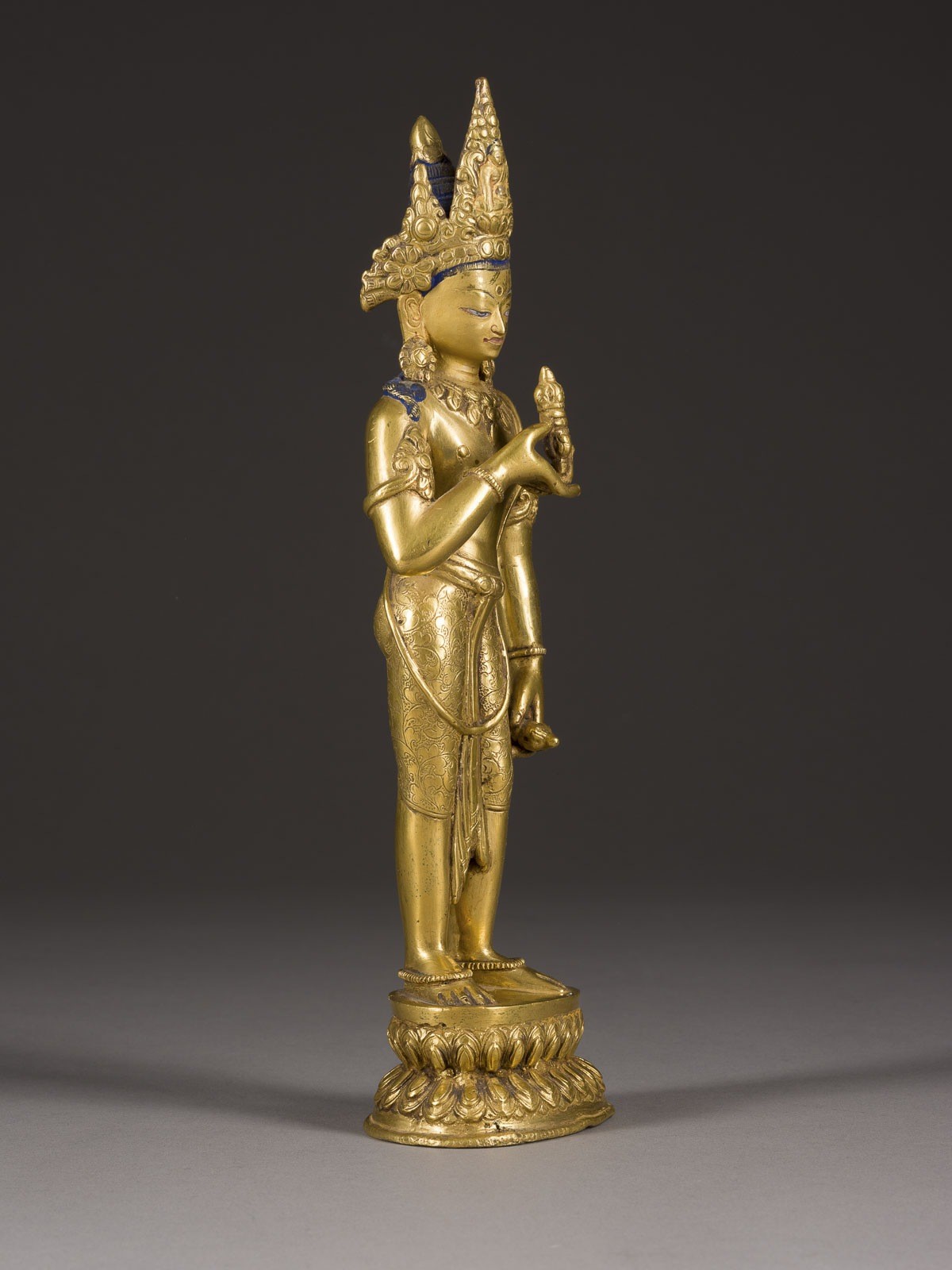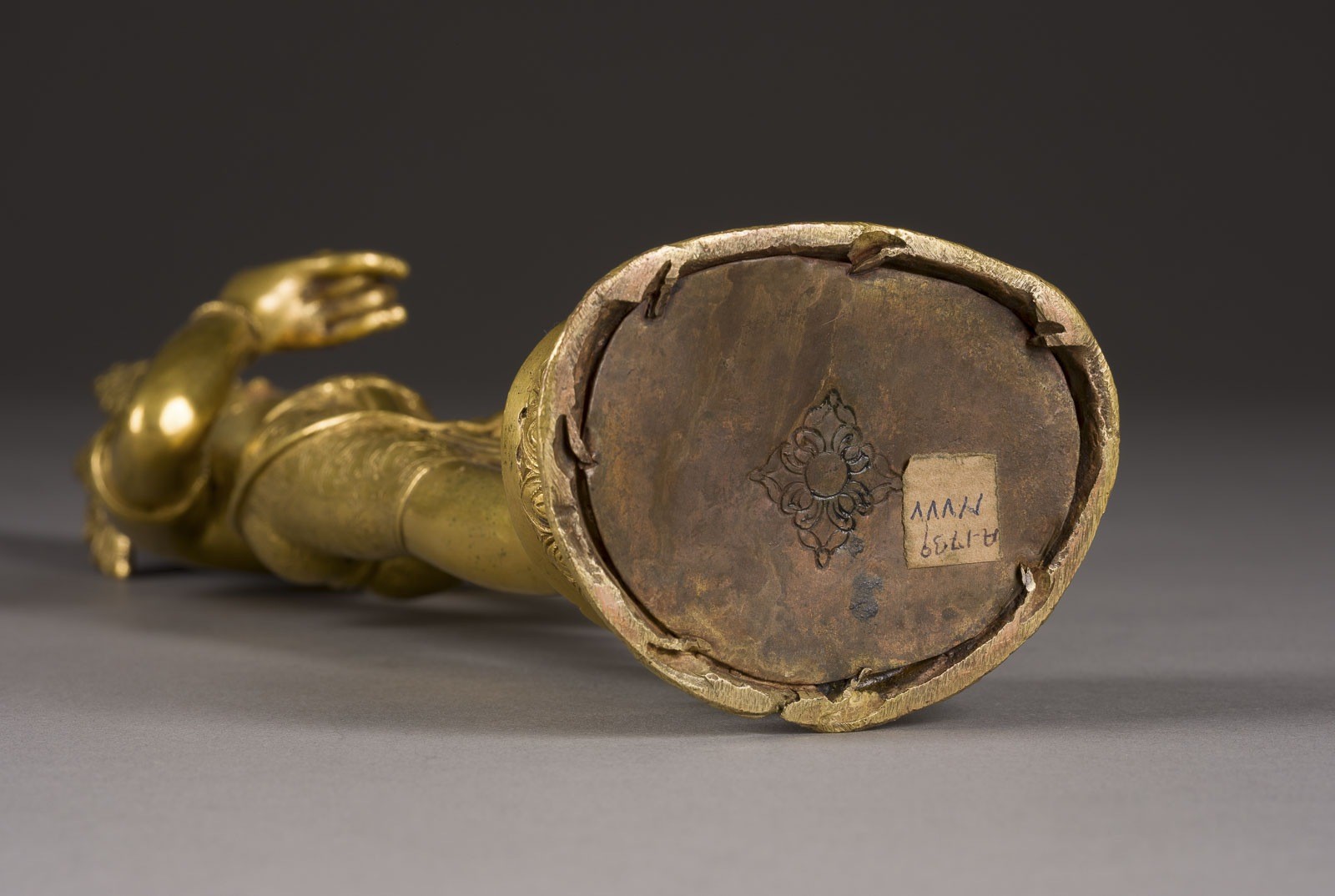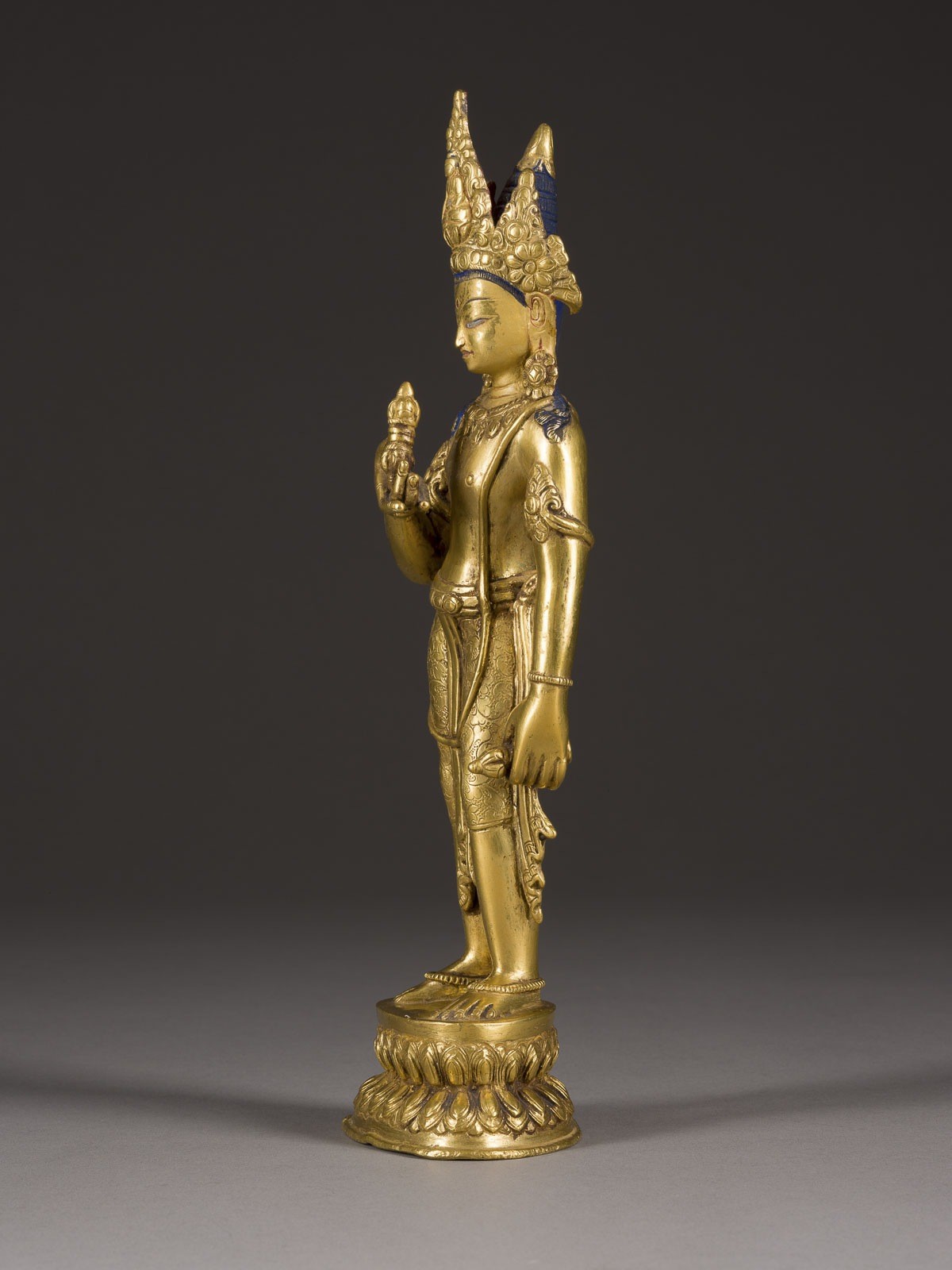 EINE VERGOLDETE FIGUR EINES STEHENDEN VAJRASATTVA AUS BRONZE