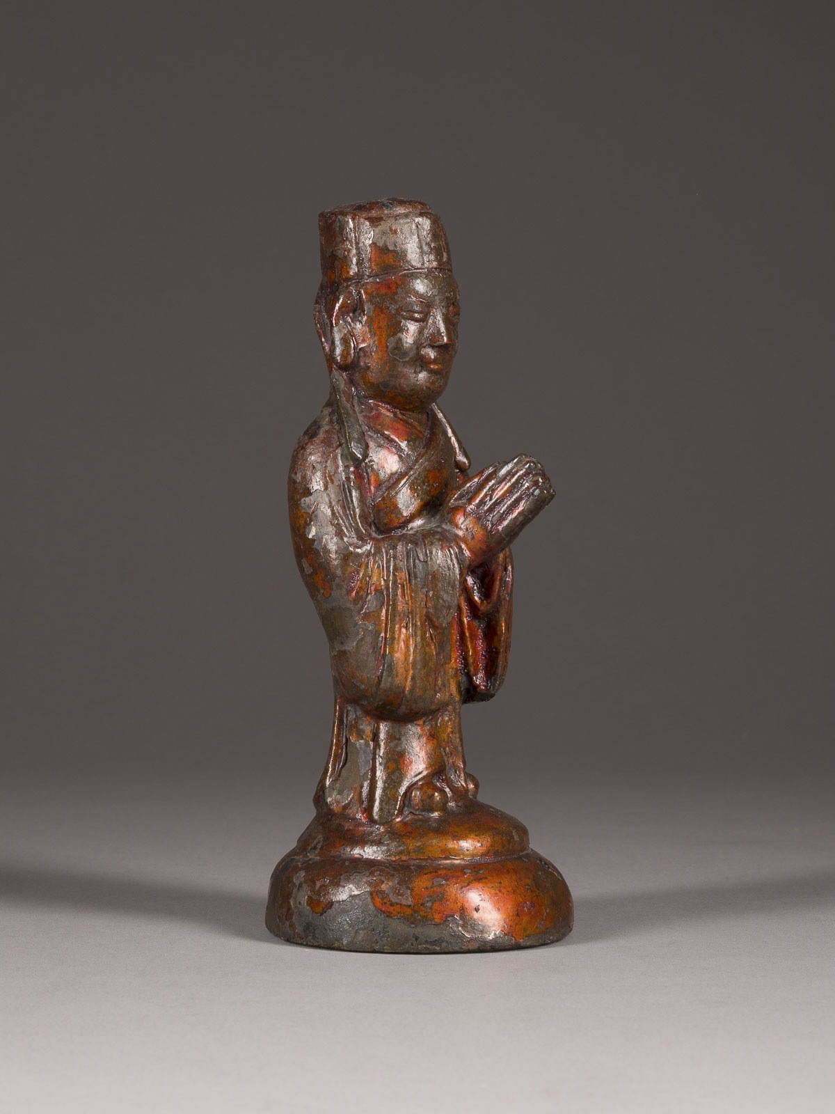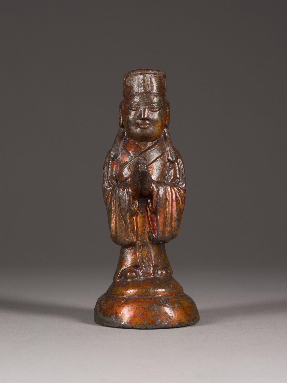 EINE VERGOLDETE LACKIERTE FIGUR EINER DAOISTISCHEN GOTTHEIT AUS BRONZE