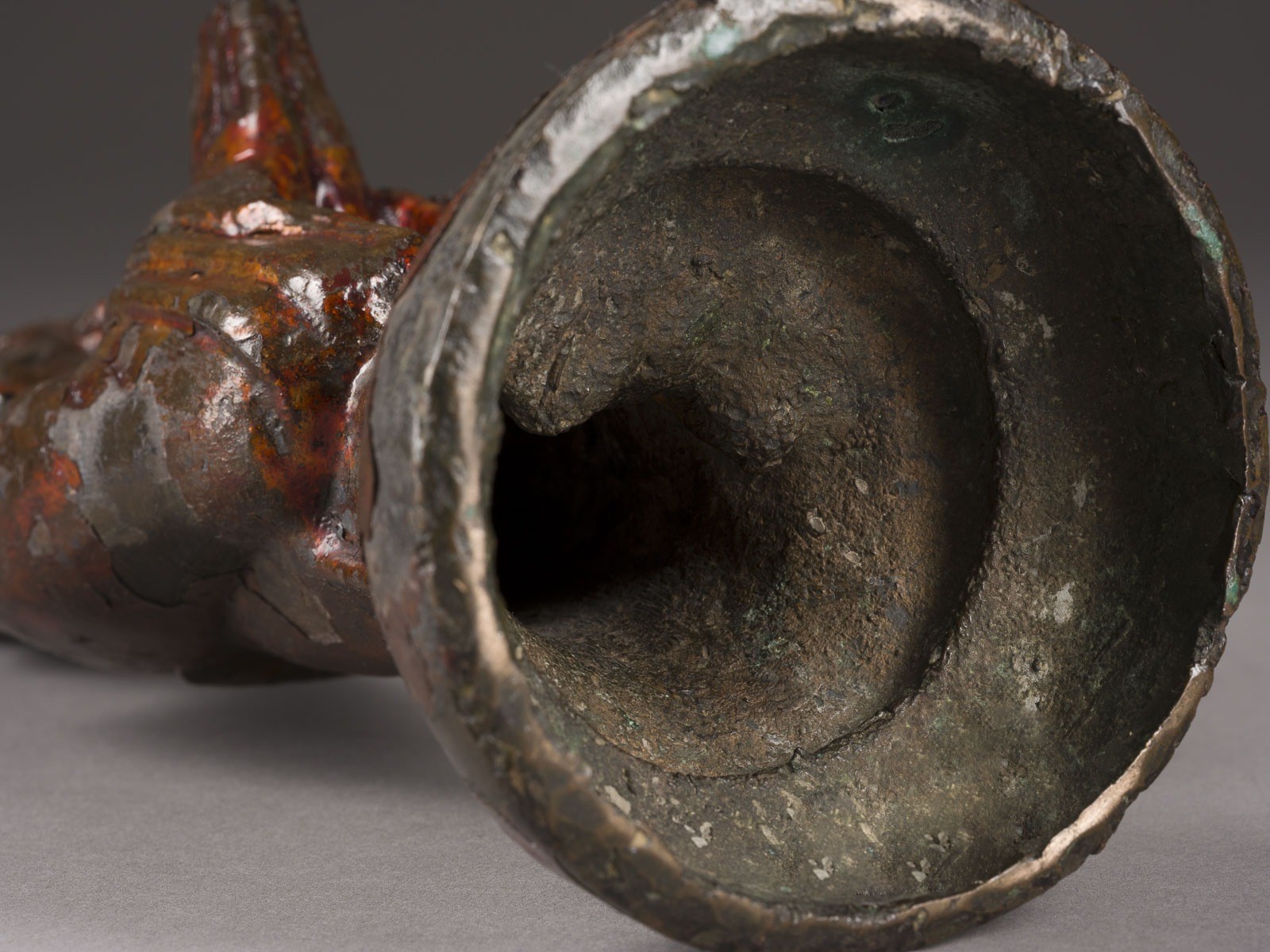 Bronze. H. 22,5 cm. Mit Altersspuren und Vergoldung, teilw. ber. u. leicht besch..