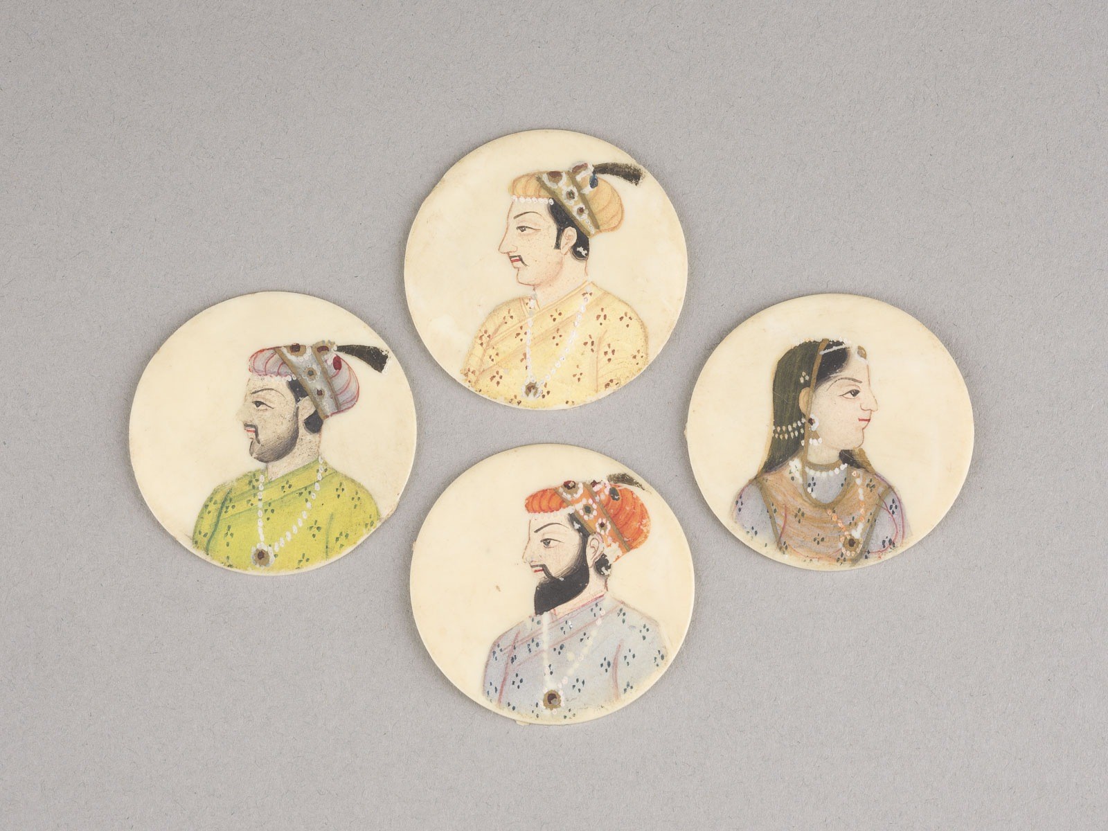 Farbe auf Kunststoffscheiben. D. ca. 4 cm. Mit Altersspuren, teilw. ber. u. fleckig.