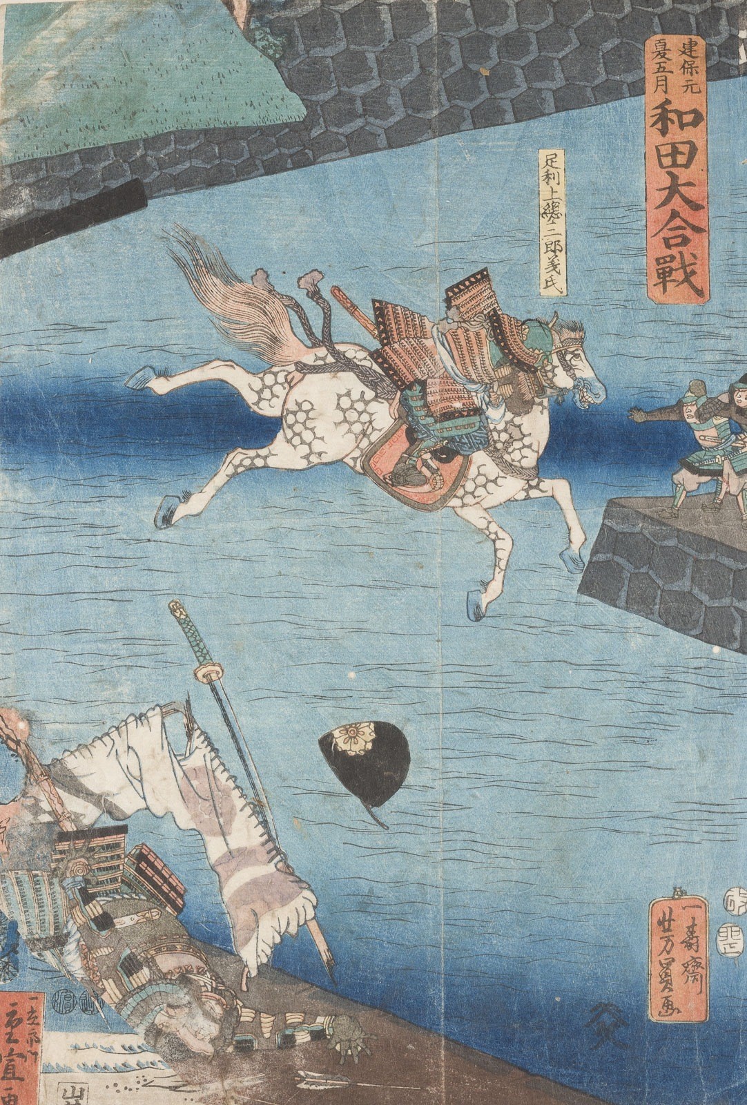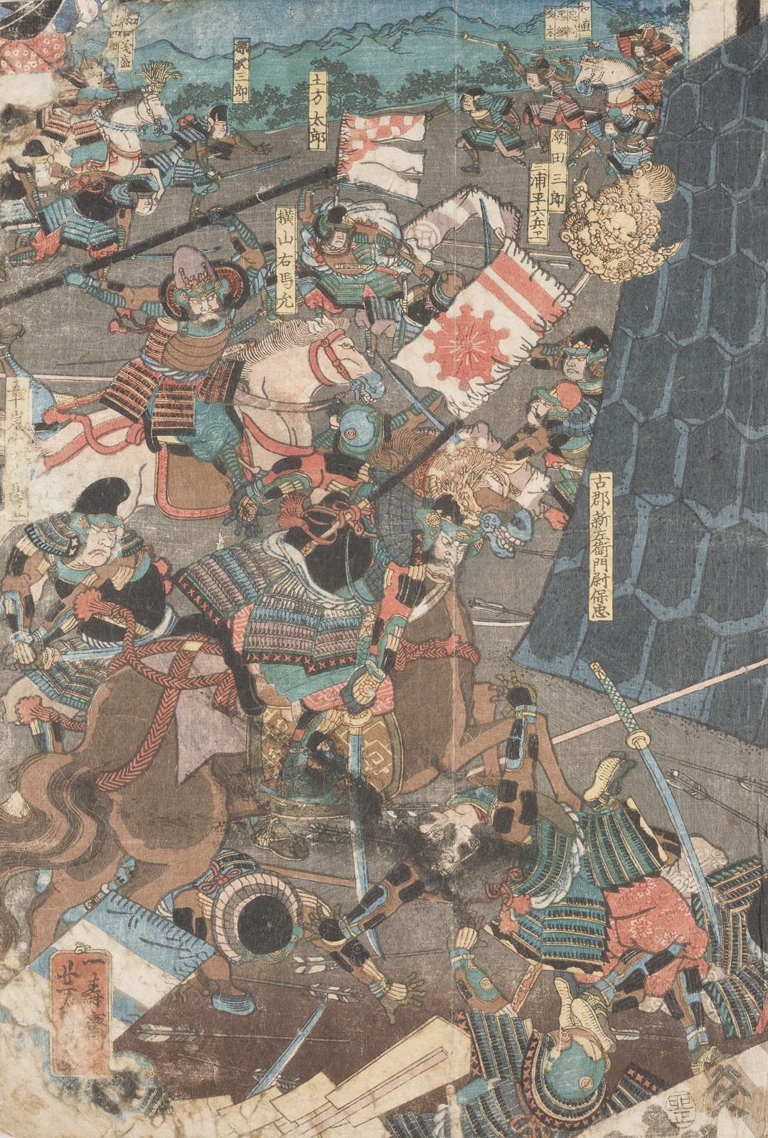 ZWEI UKIYO-E AUS DEM TRIPTYCHON "ATTACK ON ICHI-NO-TANI"