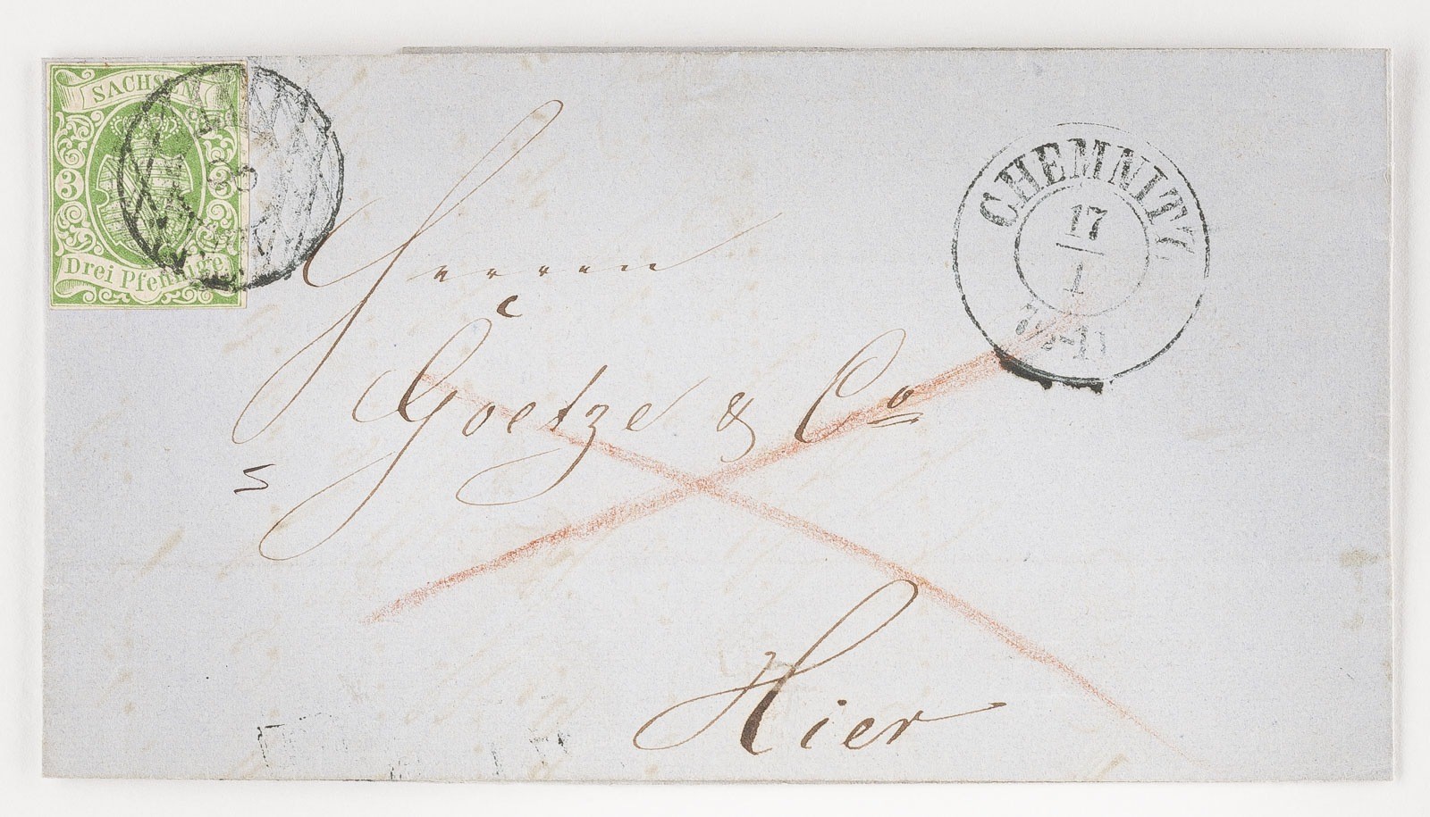 Sachsen Inlandsbrief drei Pfennige von Chemnitz nach Chemnitz (?) nebst Zweikreisstempel 'CHEMNITZ
