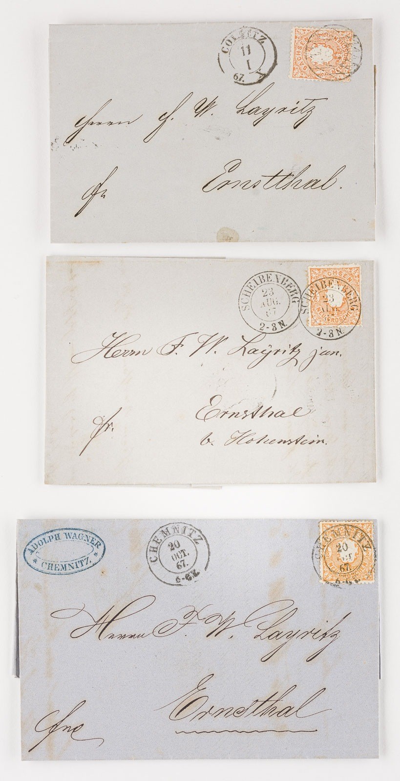 Sachsen Konvolut sechs Inlandsbriefe: Alle einen halben Neu-Groschen nach Ernstthal bzw.