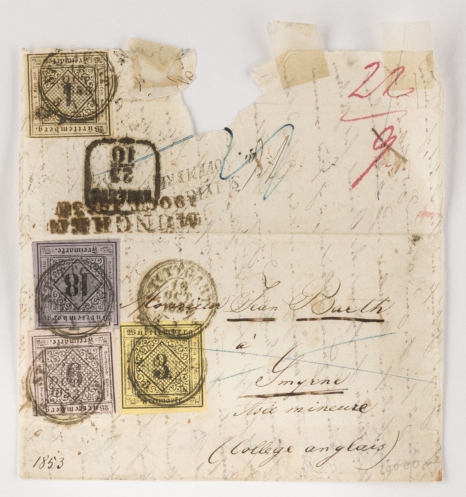 Württemberg Auslandsbrief nach Smyrne, Asia mineure, College anglais (heutiges Izmir Türkei). Ein