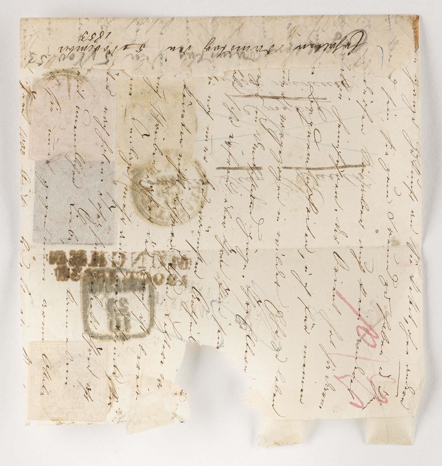 (verso), drei, neun und achtzehn Kreuzer nebst vier Rundstempel 'STUTTGART 18 OCT 1853'