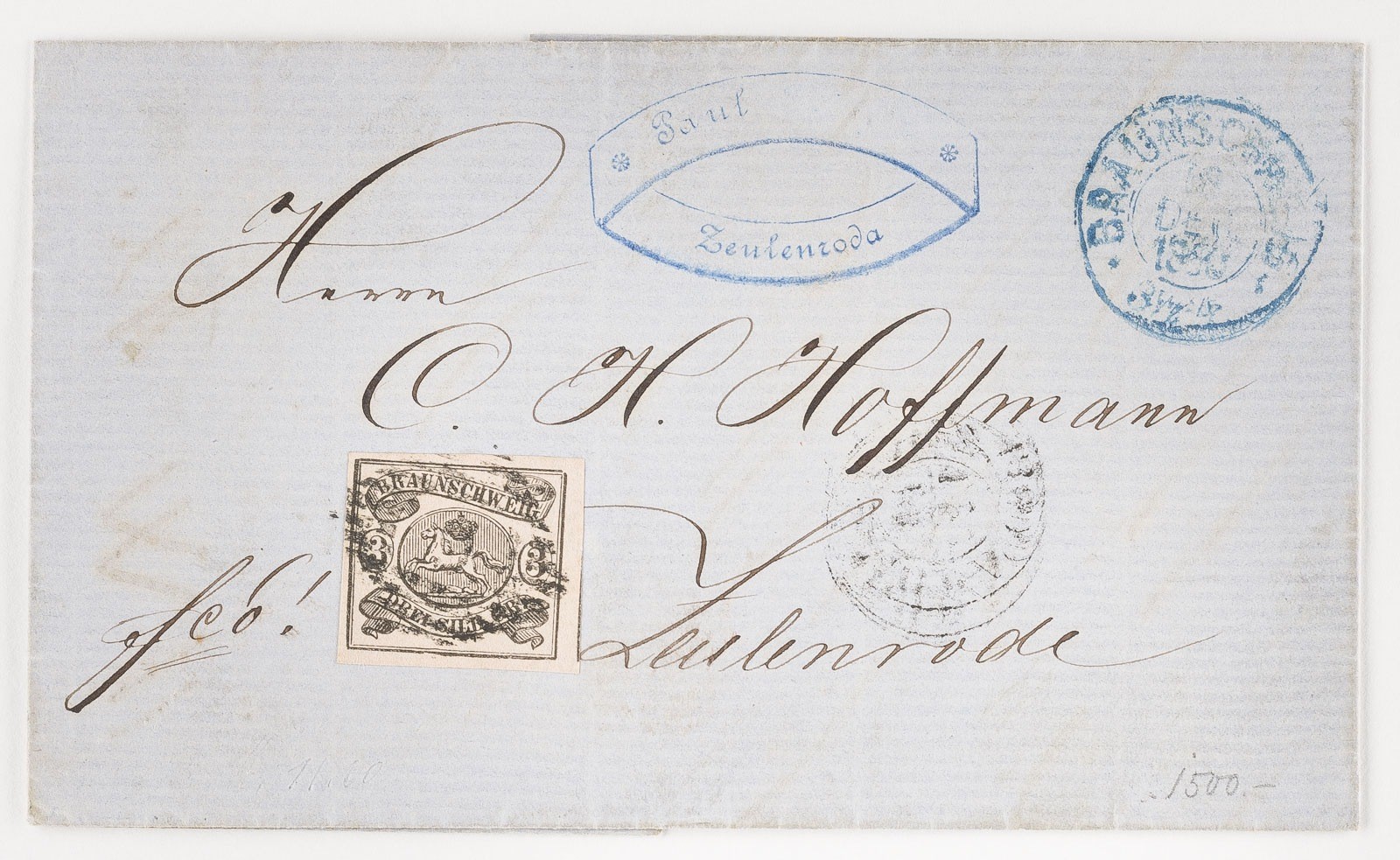Braunschweig Drei Silbergroschen auf Inlandsbrief nach Zeulenroda nebst Zweikreisstempel 'BRAUNSCHWEIG