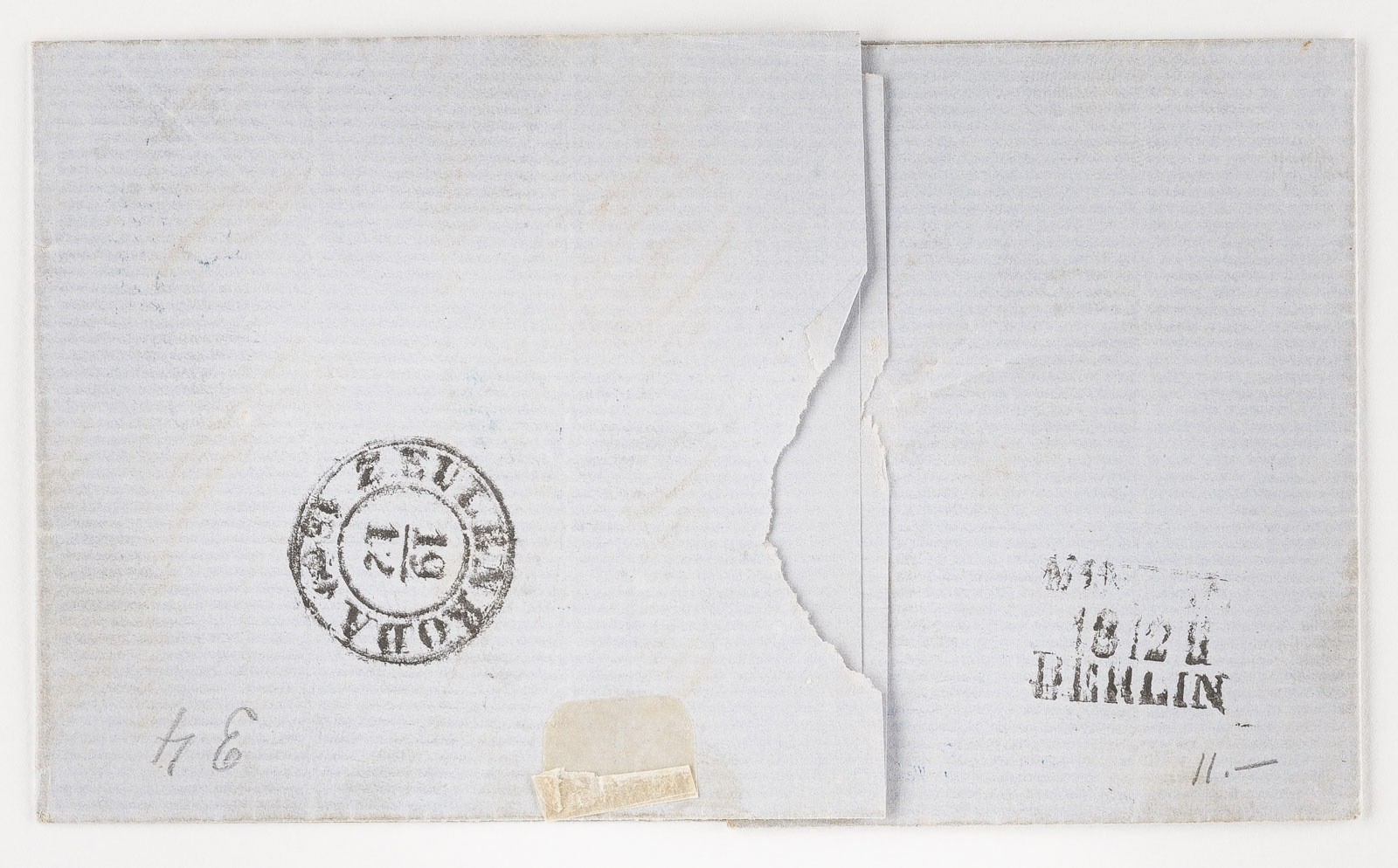 ..' verso Zweikreisstempel 'ZEULENRODA 19/12' und Zweizeilenstempel '18 12 BERLIN'.