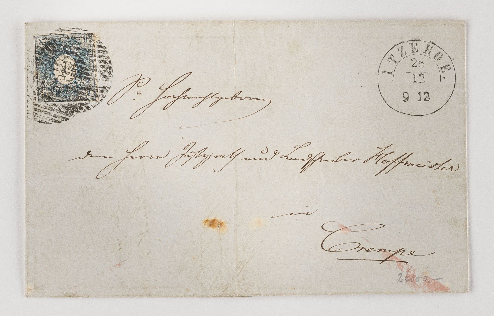 Schleswig-Holstein Ein Schilling auf Inlandsbrief nach Crempe nebst Einkreisstempel mit Bogen 'ITZEHOE 28/12
