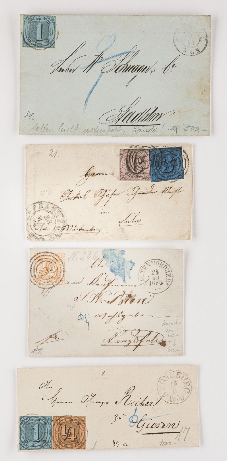 Thurn und Taxis Konvolut vier Inlandsbriefe: 1/2 Silbergroschen nach Lengsfeld nebst Vierringstempel und