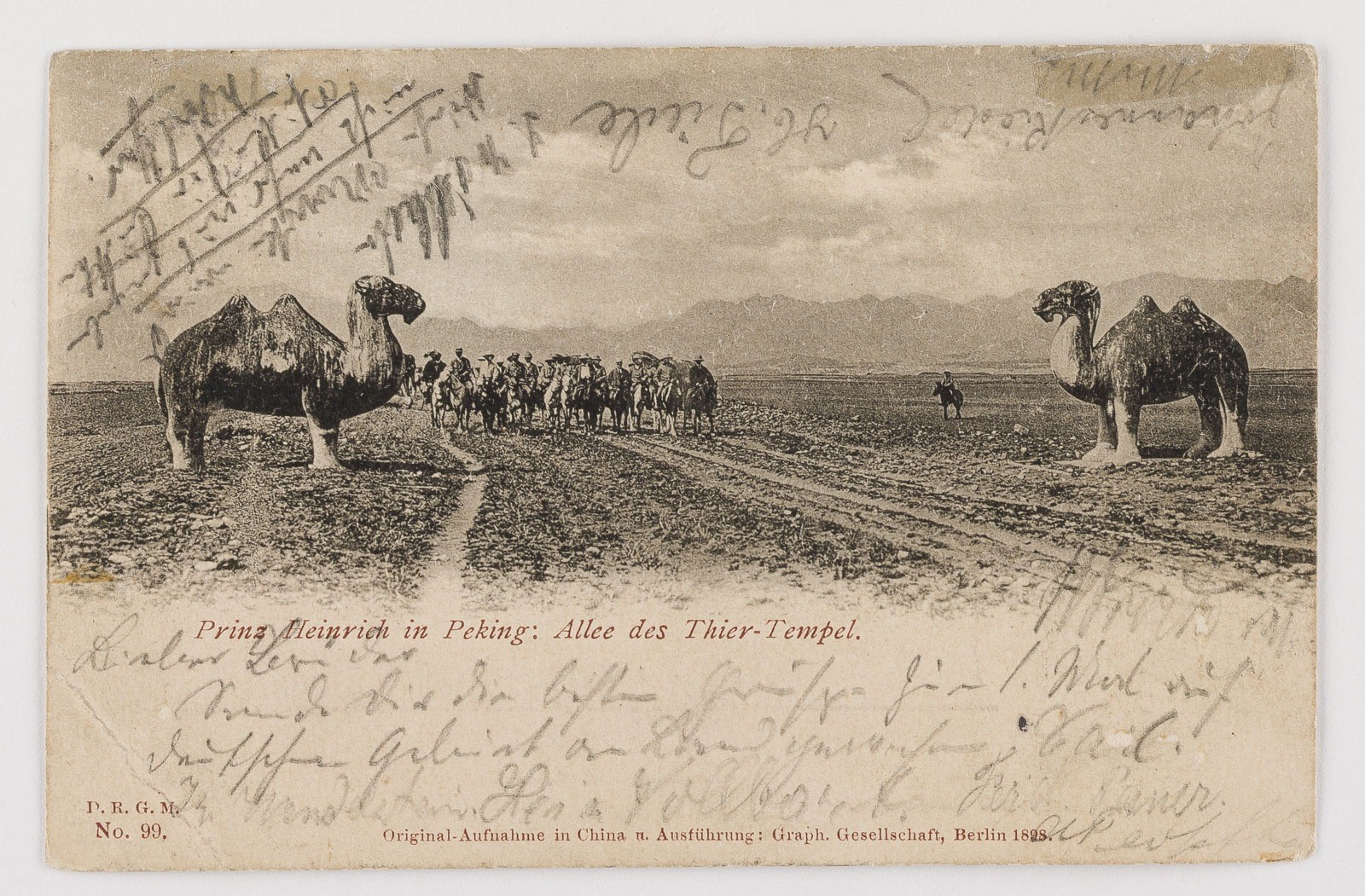 China Provisorium. Postkarte (Prinz Heinrich in Peking Allee des Thier-Tempels) nach Pegli/Genua