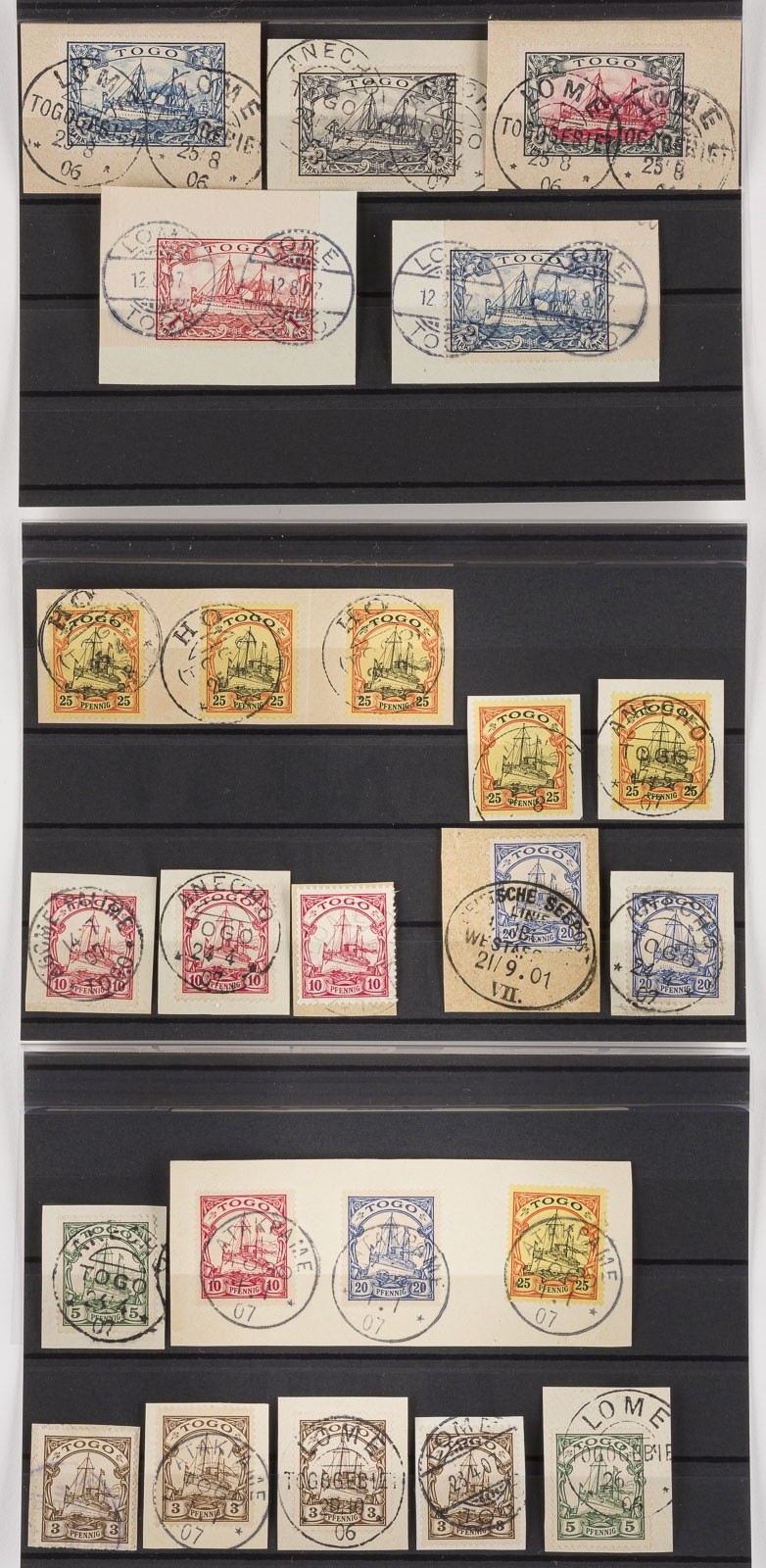 Togo Konvolut 67 diverse Marken aus der Kaiseryachtreihe Togo, teilweise auf Briefausschnitt,