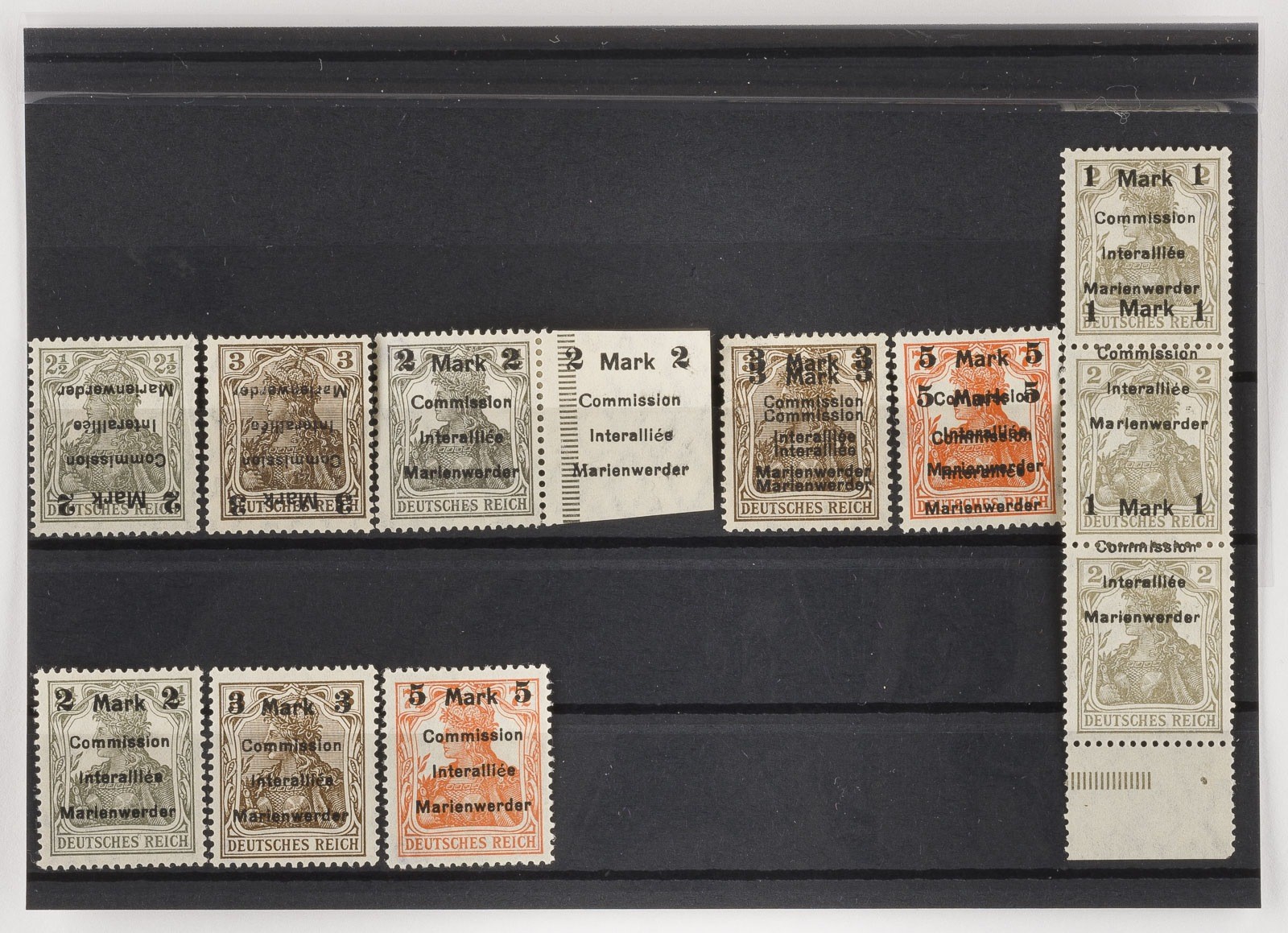 Marienwerder Konvolut 11 Marken (Germania), 2 Pf., 2 1/2 Pf., 3 Pf., 7 1/2 Pf. teilweise doppelter