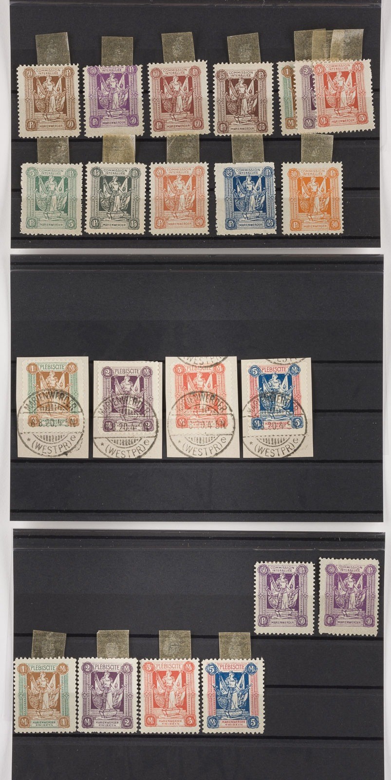Marienwerder Konvolut 75 diverse Marken, teilweise auf Briefausschnitt, partiell mit schwarzem Aufdruck