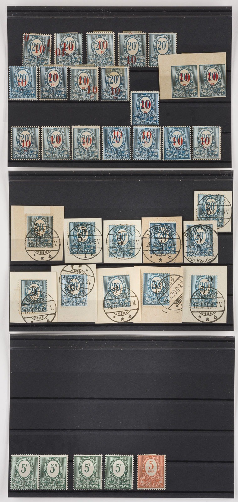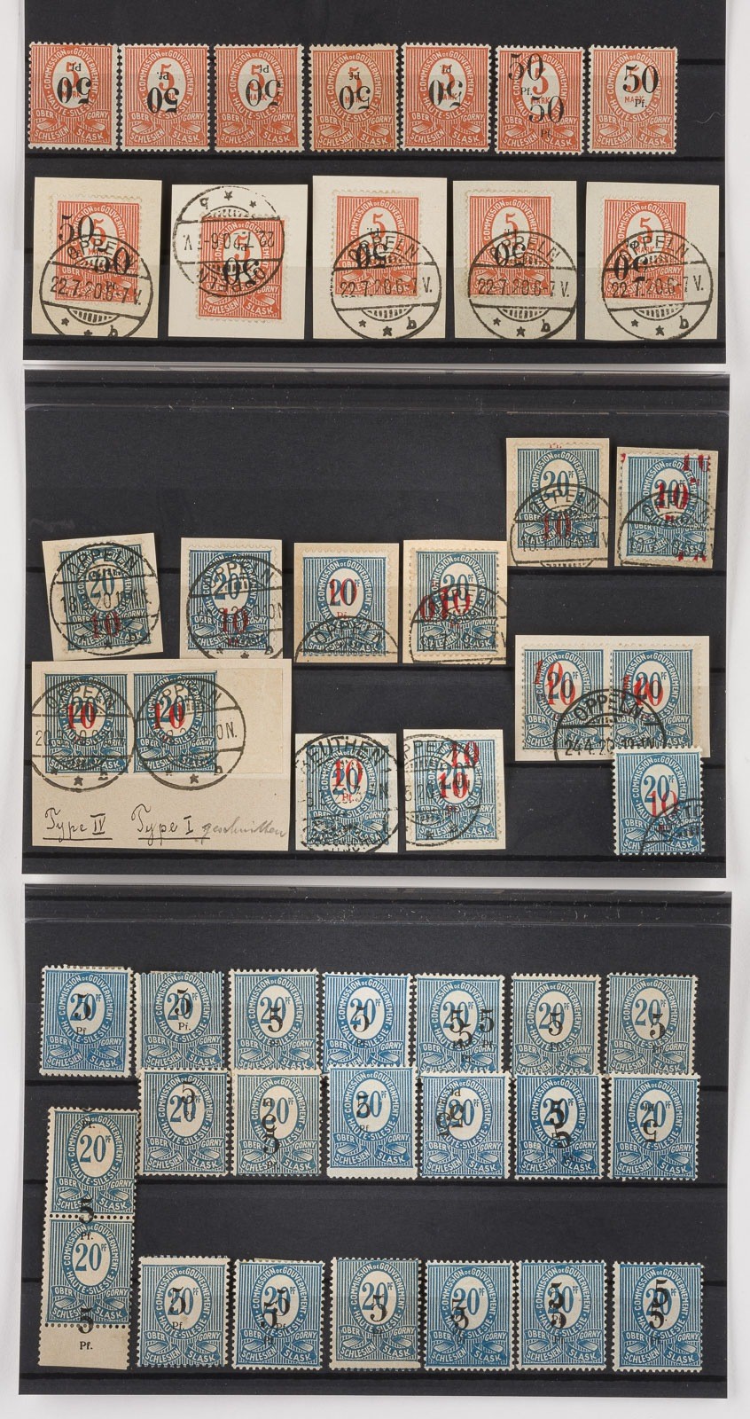 Oberschlesien Konvolut 140 diverse Marken, teilweise Abarten, Platten- und Aufdruckfehler (kopfstehender