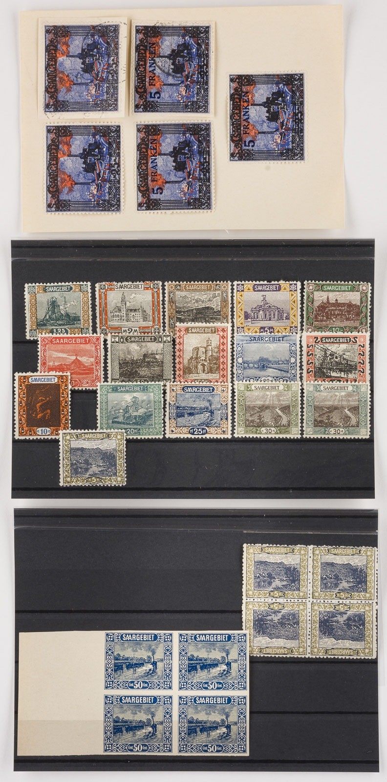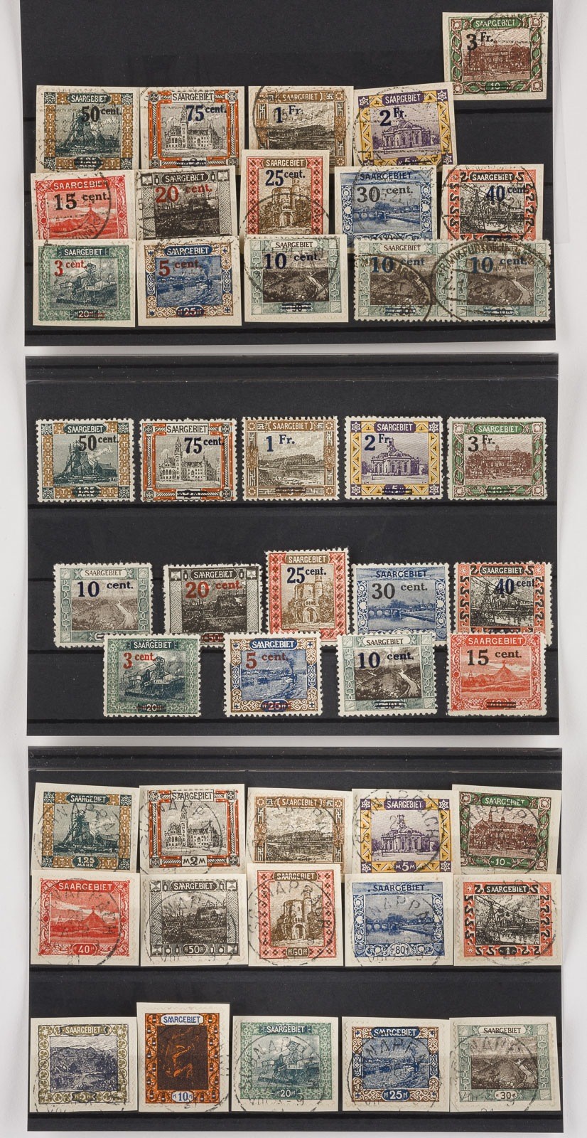 Saargebiet Konvolut 86 diverse Marke, teilweise auf Briefausschnitt, einige Abarten und Fehldrucke.