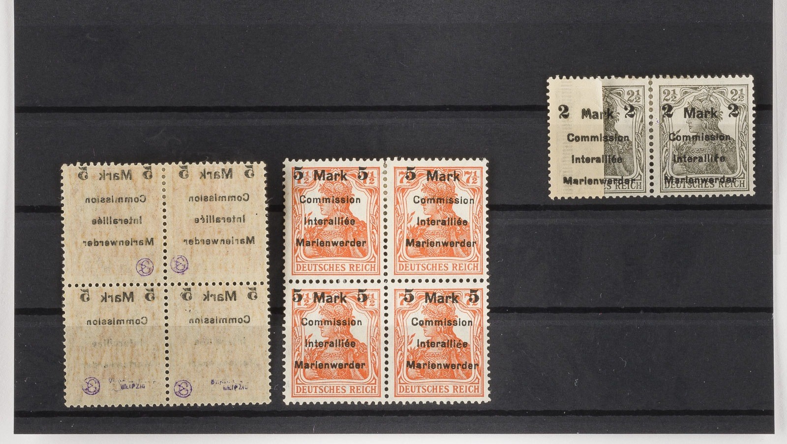 schwarzem Überdruck 'Commission Interalliée Marienwerder' und dasselbe mit rückseitigem