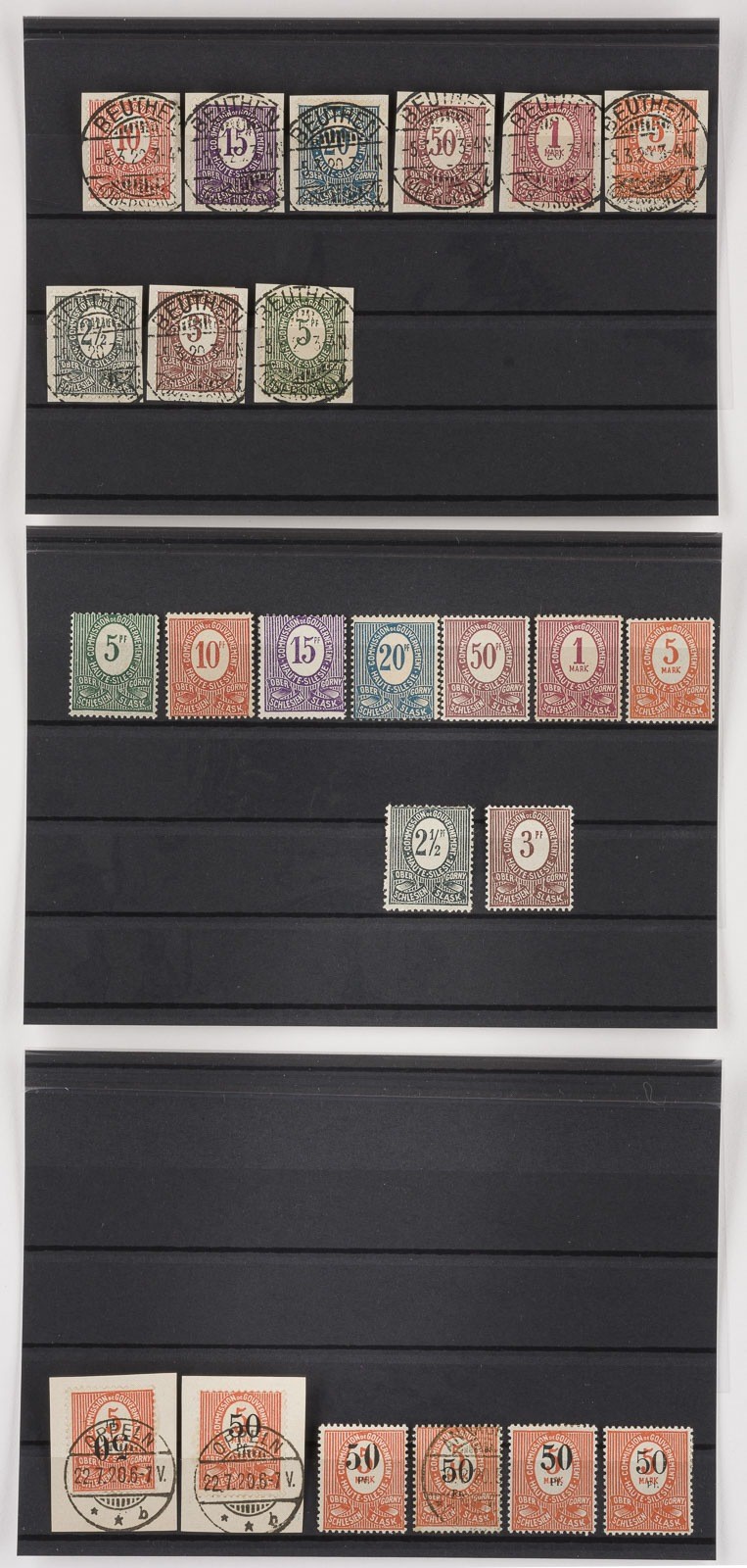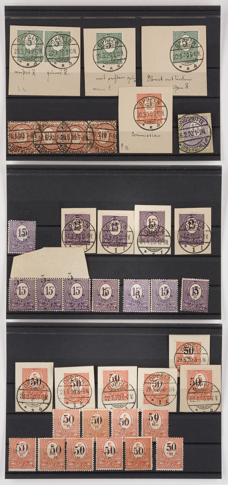 Oberschlesien Konvolut 140 diverse Marken, teilweise Abarten, Platten- und Aufdruckfehler (kopfstehender