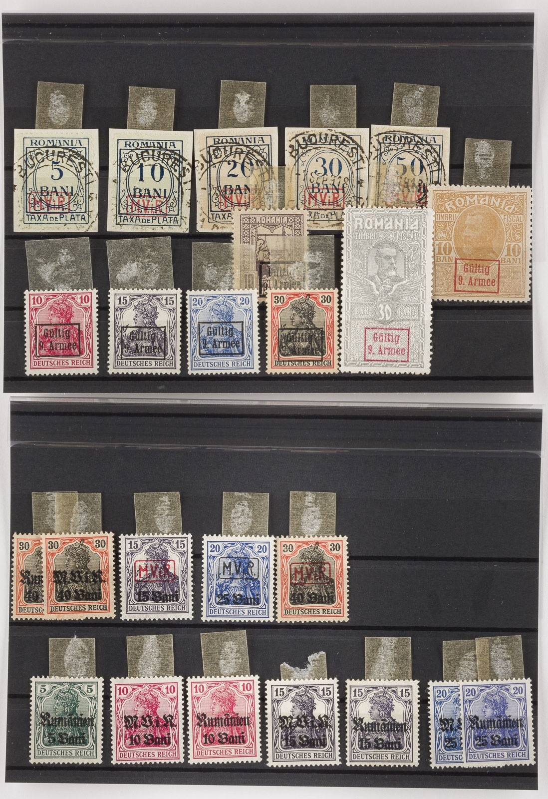 Militärverwaltung in Rumänien (1) Konvolut 59 Marken Militärverwaltung Rumänien, teilweise Briefausschnitte,